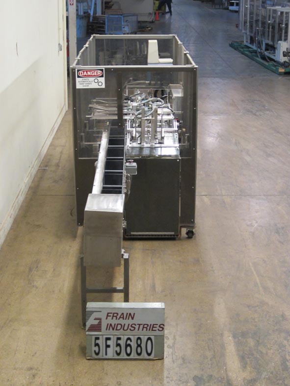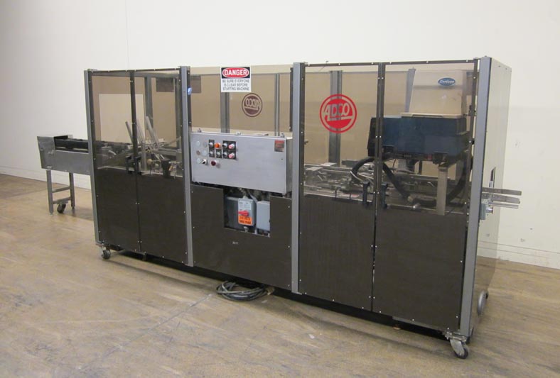 返回所有设备Adco 15SSIAL2型,自动,间歇运动,不锈钢,卧式,热熔纸箱,每分钟纸箱数量-取决于材料,应用和机器配置。纸箱尺寸范围:长度2"至12";宽度为1"至3";深度4“至7”。配备4条可调链在16"中心,3"宽2-1/4"高耳,72"长固定桶产品装载区,往复纸箱picn -place, 2头ram产品装载系统,没有产品-没有纸箱。诺信热熔胶系统,联锁Lexan保护,真空泵,带真空和e-stop的电凸轮控制器。安装在带脚轮的不锈钢框架上。