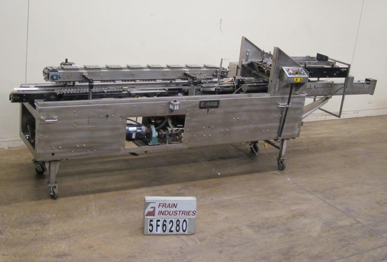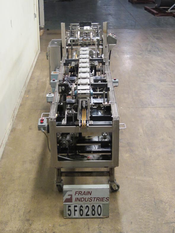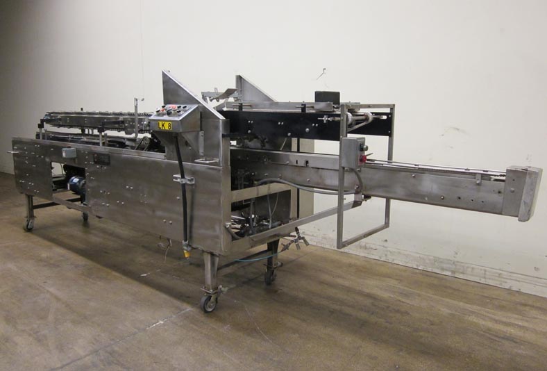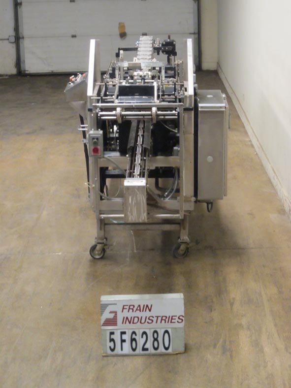 返回所有设备Adco型号WA80SS,自动,不锈钢,缠绕套管额定每分钟20至50箱-取决于材料和应用。产品尺寸:1-1/2"到6"直径。毛坯尺寸:长度1-1/2"至9-1/2";9-1/2"到30-1/2"宽度。成品包装尺寸:1-1/2"至9-1/2"长度;宽度1-1/2"至6";深度2到9英寸。配备了一个120"长拖链进料输送机设置在11"中心,48"长的空白纸箱杂志,往复真空挑选和放置,96"长的顶部集装箱处理输送机,和按钮控制。安装在(4)带脚轮的不锈钢框架上。