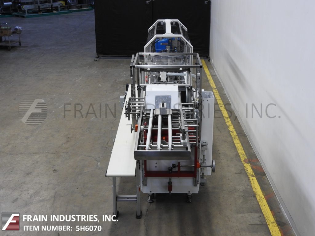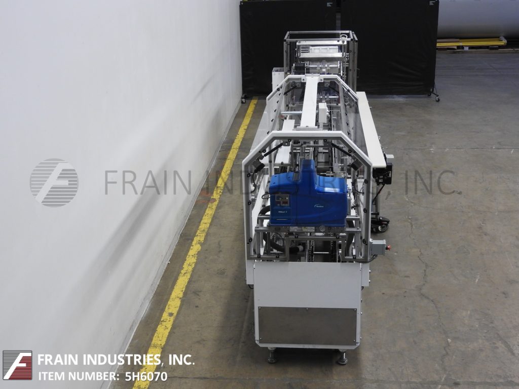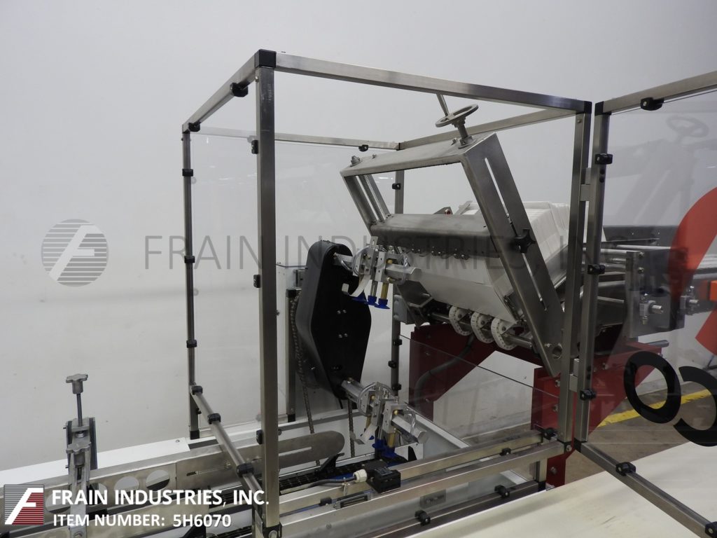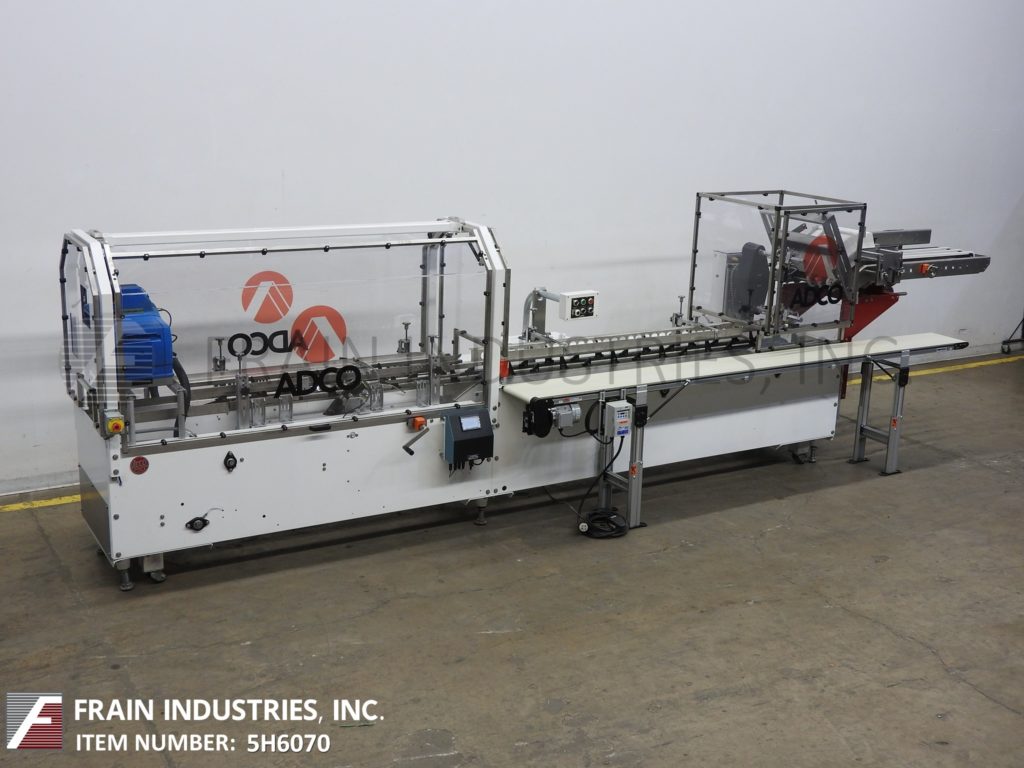 返回所有设备Adco型号15D105EC,半自动,卧式,热熔胶纸箱每分钟从25到125箱-取决于材料,应用和操作熟练度。纸箱尺寸范围:1"至9"长度;3/4"到4"宽度;深度4英寸到12英寸。配备(4)可调链设置在12"中心,2"宽x 3-1/2"高耳。36"长的自动空白纸箱杂志(2)头旋转真空挑选和地方,顶部纸箱保持下来的轨道,80"长的操作负载区域,诺德森热熔胶系统,皮瓣塔克和seko仪表。控制面板有继电器逻辑控制器和操作员控制面板,带有主、热熔和真空系统的开/关开关,启动,停止,e-stop按钮和脚踏踏板慢跑。安装在重型框架与联锁安全防护和水平腿与脚轮。