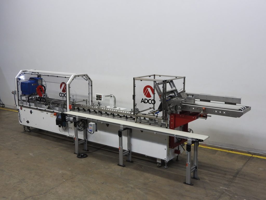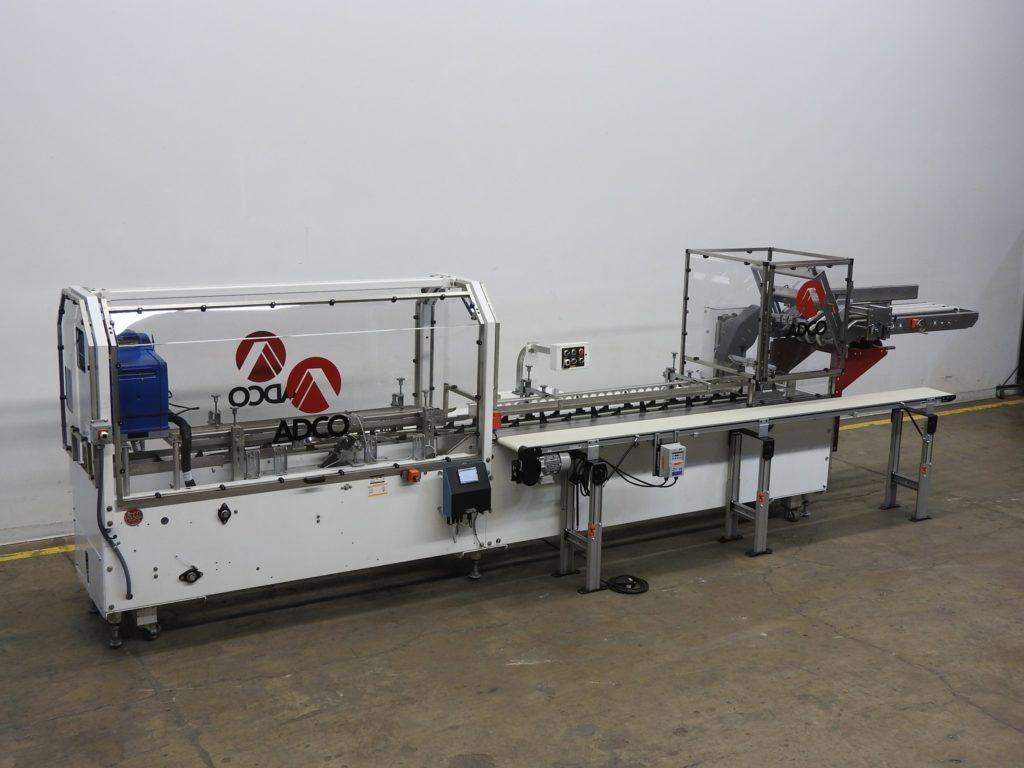 返回所有设备Adco型号15D105EC,半自动,卧式,热熔胶纸箱每分钟从25到125箱-取决于材料,应用和操作熟练度。纸箱尺寸范围:1"至12-1/2"长度;3/4"到4"宽度;深度4英寸到12英寸。配备(4)可调链设置在15"中心,2-1/2"宽x 4-1/2"高耳。36"长的自动空白纸箱杂志(2)头旋转真空挑选和地方,顶部纸箱保持下来的轨道,80"长的操作负载区域,诺德森热熔胶系统,皮瓣塔克和seko仪表。控制面板有继电器逻辑控制器和操作员控制面板,带有主、热熔和真空系统的开/关开关,启动,停止,e-stop按钮和脚踏踏板慢跑。安装在重型框架与联锁安全防护,脚轮和水平腿。