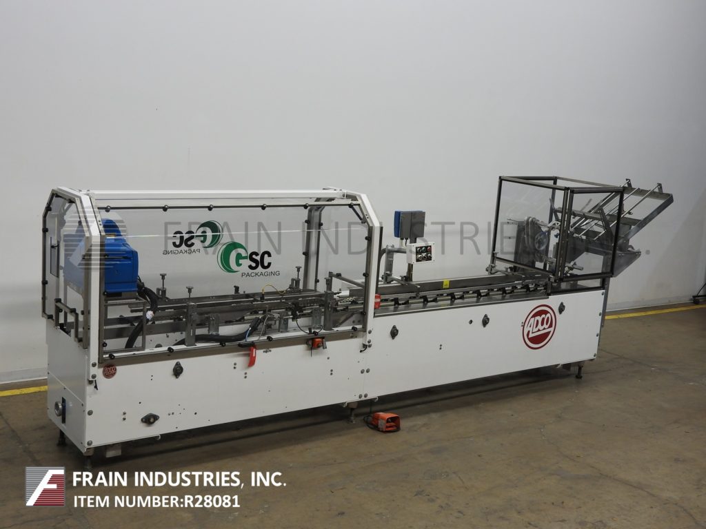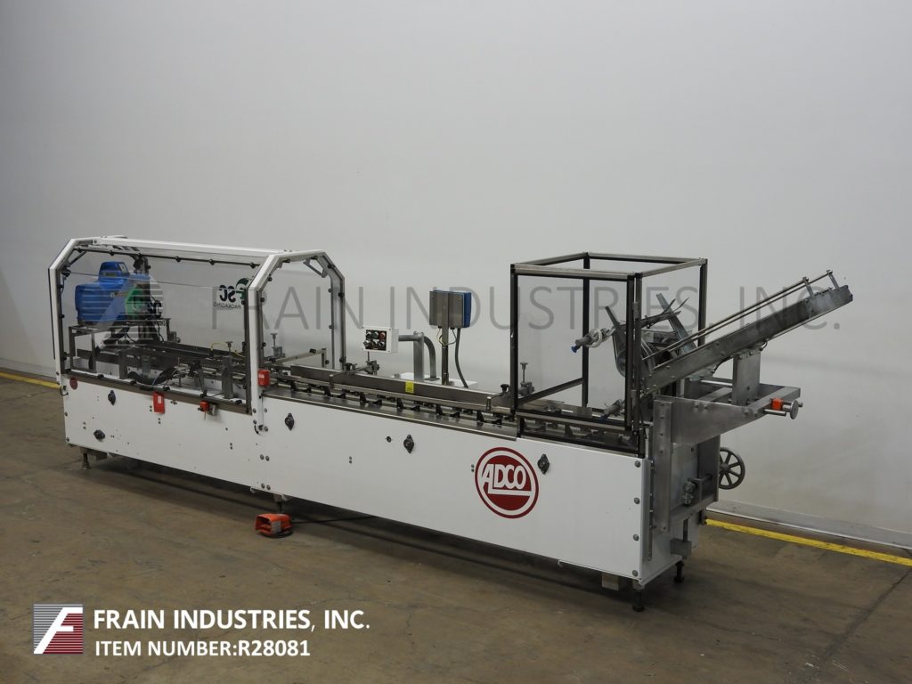 返回所有设备Adco型号15D105EC,半自动,卧式,热熔胶纸箱每分钟从25到100箱-取决于材料,应用和操作熟练度。配备4个可调链设置在12"中心,2-1/2"宽x 3"高耳。纸箱尺寸范围:1"至9-1/2"长度;3/4"到4"宽度;4“到11”在深度。36“长的自动可调空白纸箱杂志2头旋转真空挑选和地方,顶部纸箱按住轨道,72“长的手装载区域,诺德森热熔胶系统,皮瓣卷布和Seko仪表。控制面板有A/B控制器和操作人员控制真空和控制开关启动,停止和e-stop按钮控制脚踏板慢跑。安装在重型基础框架与联锁安全防护,脚轮和水平腿。