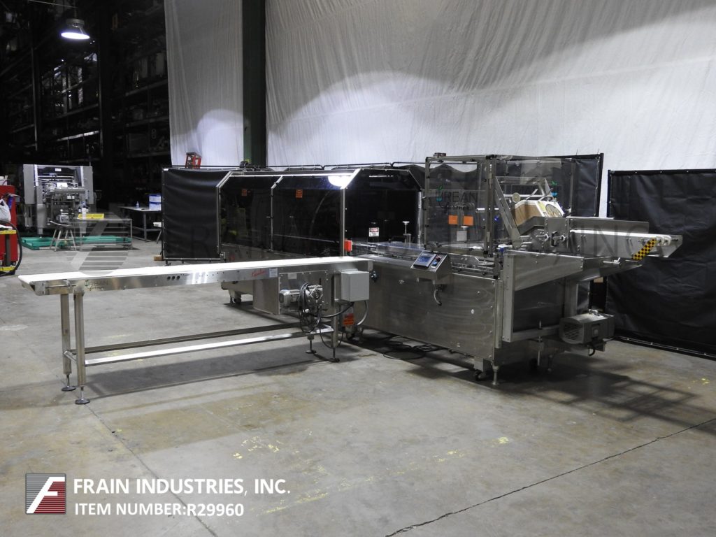 返回所有设备ADCO,型号15D105,半自动,不锈钢,水平,左右,连续运动,热熔胶胶凝剂,每分钟20到80纸盒 - 取决于材料,应用和操作员灵活性。纸箱尺寸范围:1“至10½”的长度;¾“宽度为4”;深度为4½“至12”。配备(3)链可调节12“中心,带1½”宽x 4“高凸耳,36英寸长(3)腰带自动空白纸箱杂志,具有(3)头旋转镐和放置,有16”宽X 120英寸长,氯丁橡胶带产品在供给输送机。配备35英寸进给和排放44“长操作员手装胶区域,Nordson 2-Gun热熔胶系统,具有主要和小襟翼近距离和36”长x 1-1 / 2“宽压缩和排放式输送带部分,具有自含有真空系统和顶部安装的通风风扇。控制面板具有A / B控制器,带有A / B PanelView控件,读出胶水,真空和Vari速度控制,启动,重置和电子停止按钮。安装在不锈钢基架上,带有翻转互锁安全保护和脚轮。