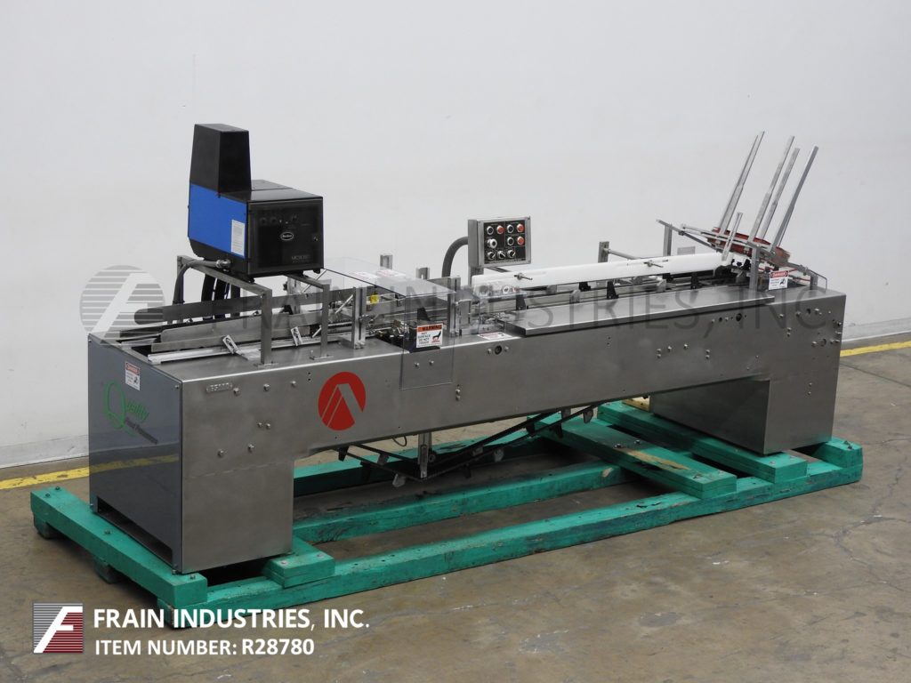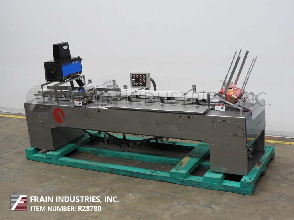 返回所有设备ADCO,型号15DSS,半自动,不锈钢,水平,热熔胶盒装。每分钟15到60纸盒 - 取决于材料,应用和操作员灵活性。纸箱尺寸范围:1.5“至18-1 / 2”的长度;3/4“至4”的宽度;深度6“至12”。配备(4)链可调节21“中心,2-1 / 2”宽X 3-1 / 4“高凸耳。24”长空白纸箱杂志,往复照片N,60英寸长的手册装载区域,Nordson 2枪热熔胶系统,次要和主要襟翼近距离。控制面板有驱动器,真空和鼓风机电机驱动器启动/停止按钮和主控制,胶水系统和热空气开/关开/关开/关开/关开/关开/关开关,自含有真空系统和脚踏踏板慢速。安装在带有脚轮的不锈钢基架上。