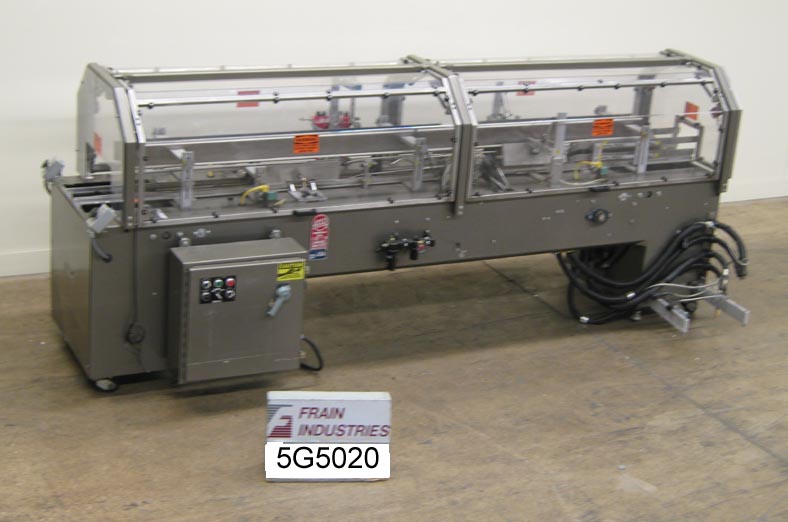 返回所有设备Adco型号15CHL-LC,半自动,卧式,不锈钢,热胶纸箱封口机额定从5至25个纸箱每分钟-取决于材料,应用和操作灵巧。纸箱尺寸范围:长度2"至12";宽度2"至7";深度4英寸到12英寸。配有2个链条系统,可调节的翻板犁,顶置的纸箱压下,(2)套胶枪,主要的翻板关闭器和压缩部分与联锁的Lexan安全防护。安装在带有脚轮的高度可调框架上。