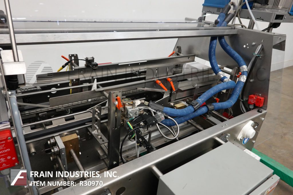 Back to All EquipmentAdco Model 15HCS-50-SS, Semi automatic, stainless steel, horizontal, continuous motion, hot melt glue twin carton sealer rated from 5 to 50 cartons per minute – depending on materials, application, machine configuration and operator dexterity. Carton size range; 2" to 12" in Length; ¾" to 4½" in Width; 3½" to 12" in Depth. Equipped with (2) lugged corrosion resistant coated chains set on 15" centers with 2" wide x 5" high lugs and 32" long operator load area each side, scale gauge hand adjustable, Nordson ProBlue hot melt glue system with separate disconnect, compression rails and 36" in feed / discharge height adjustable to +/- 1". Control panel has Control panel has AB control package with 5000 Plus controller and has start, stop, e-stop push buttons, on / off glue switch and variable-speed control dial. Mounted on stainless steel frame with interlock barrier guarding, casters and height adjustable leveling legs.
