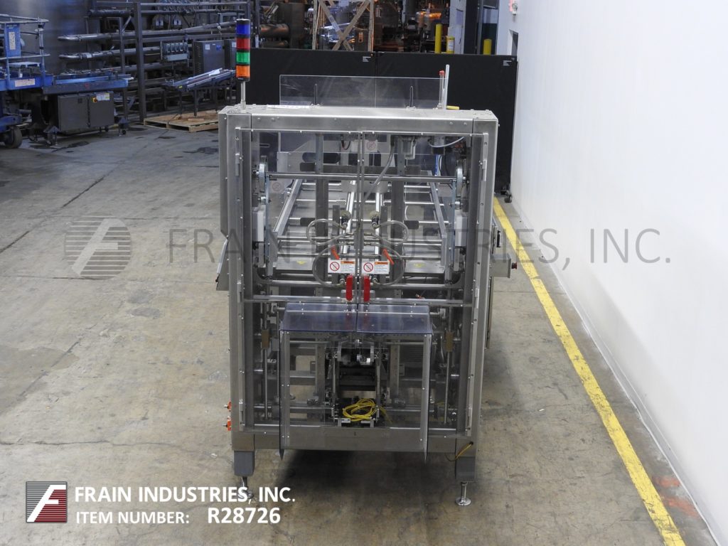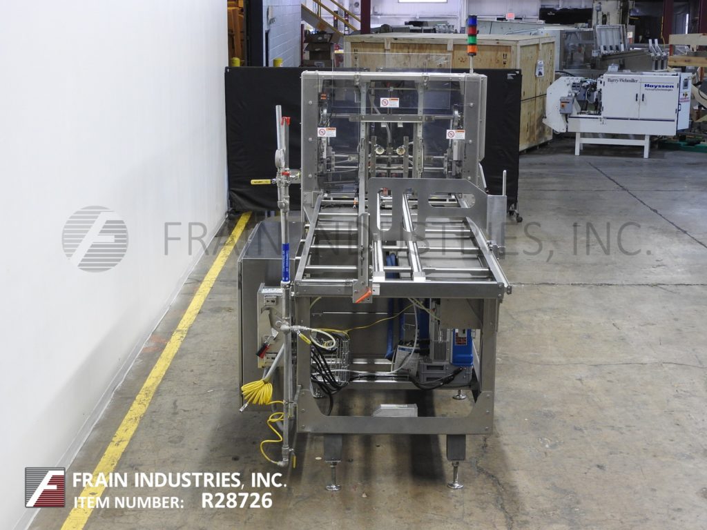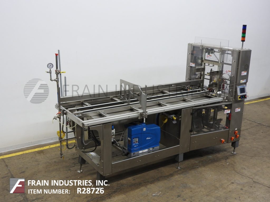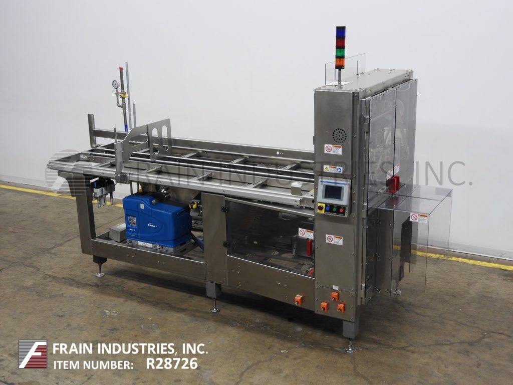 返回所有设备Adco型号CTF-470V,自动,紧凑,不锈钢,热熔胶,单头托盘前额定op为每分钟70次-取决于材料和应用。托盘尺寸范围:长度8-1/4"至25-3/4";宽度7"至18";身高1-1/2“到8”。平坯料尺寸范围:长度16-1/4"至36";15"至26"的宽度。配备60"长空白托盘杂志,往复(4)吸盘真空picn -place,双皮带空白托盘协助,可调行程单臂成型芯轴,诺德森ProBlue胶水单位和真空系统。A/B PLC控制器与面板视图控制,有e-stop,状态灯条和联锁安全门保护。安装在不锈钢框架与水平腿和锁定脚轮。