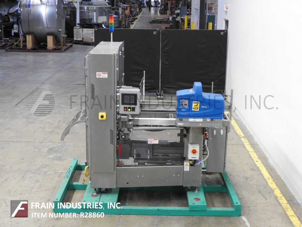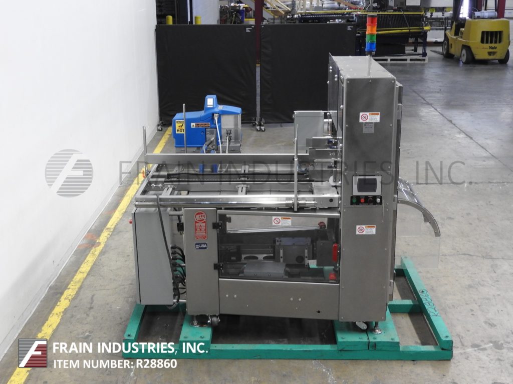 返回所有设备Adco型号CTF-470V,紧凑,不锈钢,热熔胶,托盘成型。托盘尺寸范围:8-1/4“到25-3/4”的长度;7“至18”的宽度;1-1/2“到8”的高度。平面毛坯尺寸范围:16-1/4“至36”长度;宽度为15到26英寸。配备60”长杂志,往复式(4)吸盘真空picn -place,双带空白托盘辅助,行程可调单臂成型芯棒,诺信ProBlue