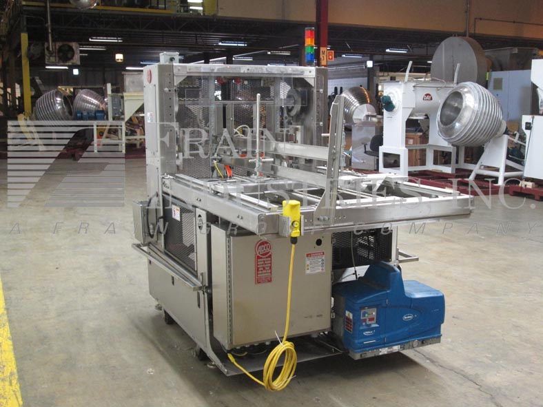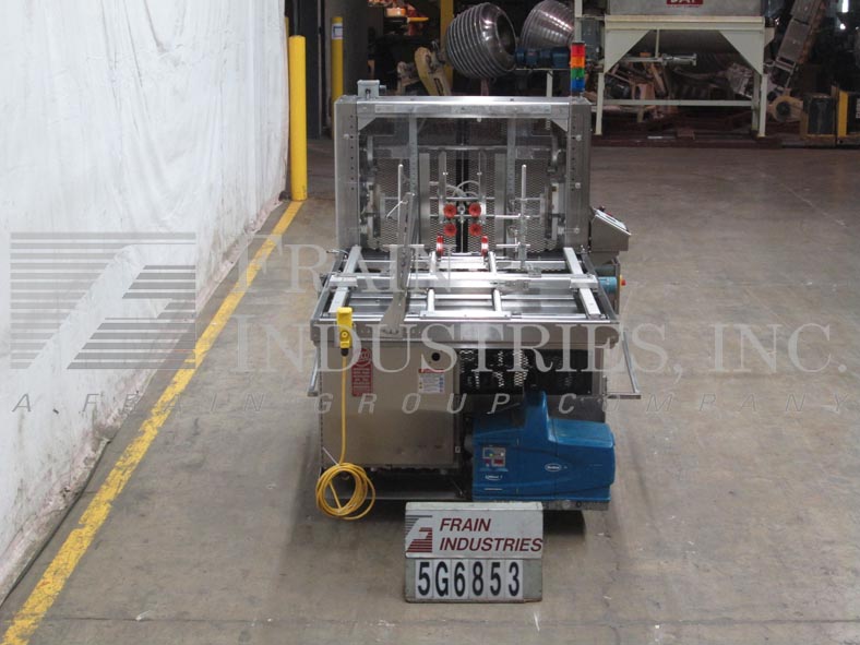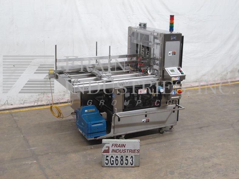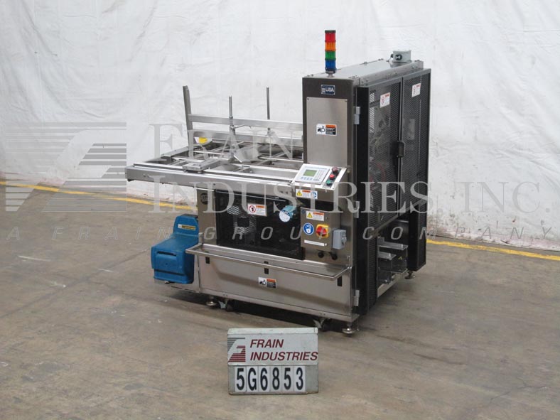返回所有设备Adco型号CTF-470V,紧凑,自动,不锈钢,单头,热熔胶,托盘前,额定每分钟10至70次-取决于材料和应用。托盘尺寸范围:8-1/4"至25-3/4"长度;宽度7"至18";身高1-1/2“到8”。平坯料尺寸范围:16-1/4"至36"长度;15"至26"的宽度。配备60"长链,自动毛坯盘magazine,(4)吸盘往复真空picn -place,双摩擦进给轮,单臂成型芯轴,曲柄行程可调,诺信热熔胶和真空系统。A/B PLC,有A/B面板视图触摸板控制器与启动,停止,e-stop按钮控制,统计灯条,笼式联锁安全保护和手持式jog控制器。安装在不锈钢底座上,带有锁定脚轮和高度可调的调平腿。