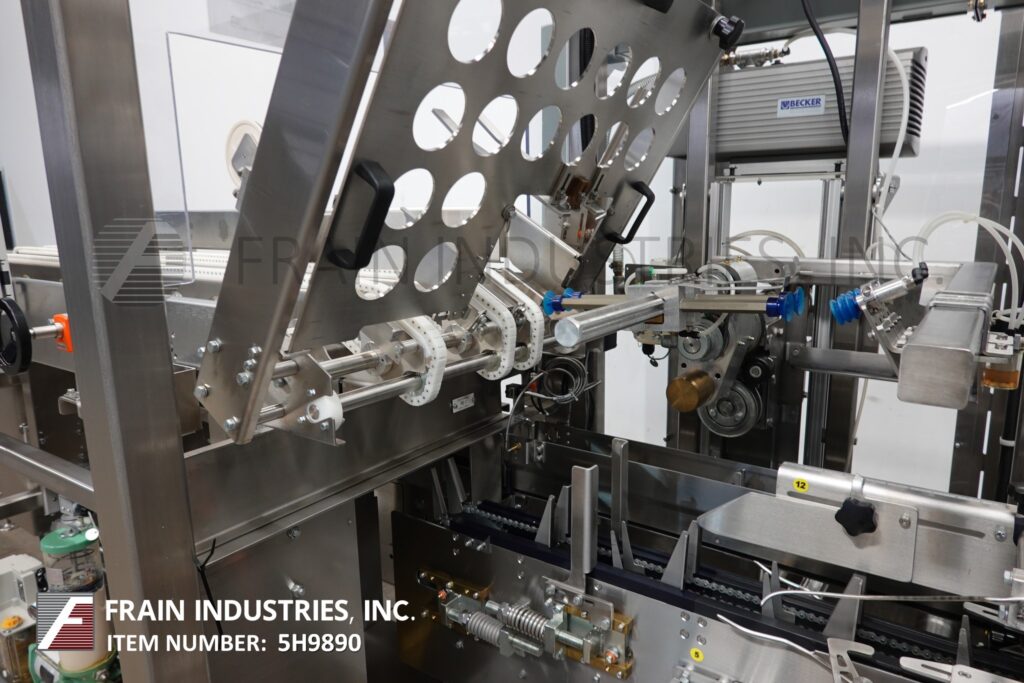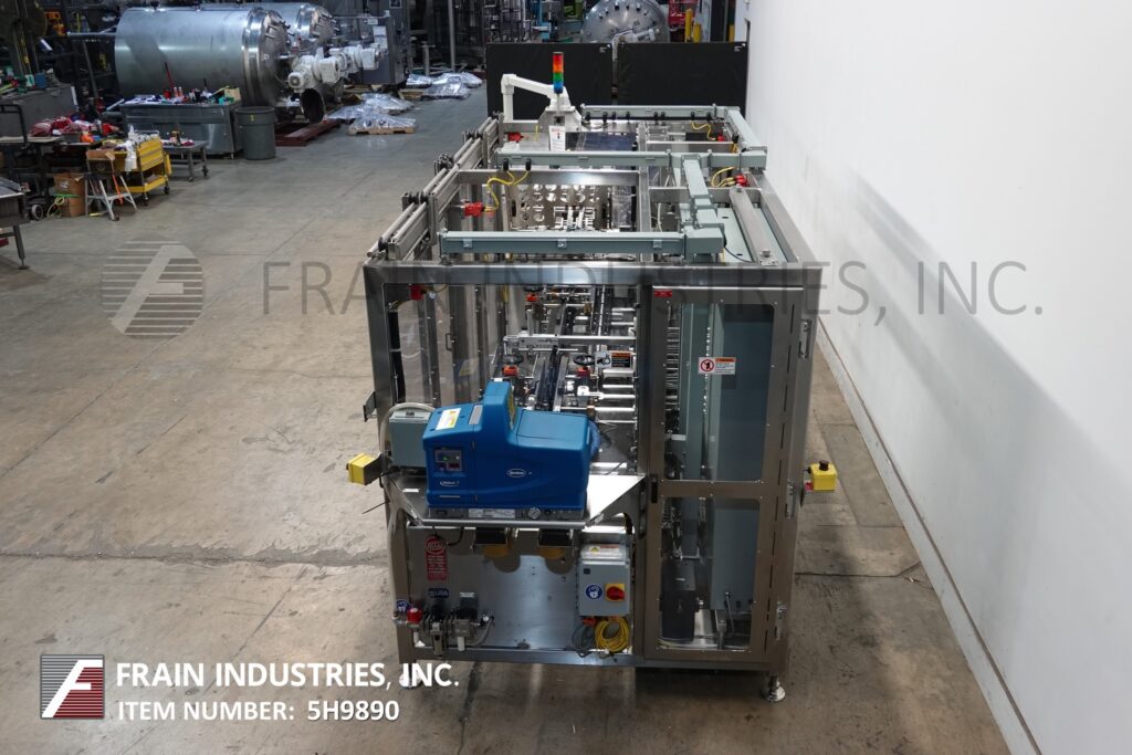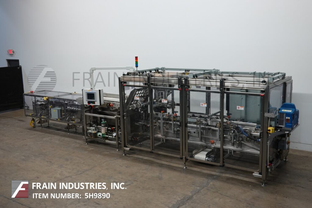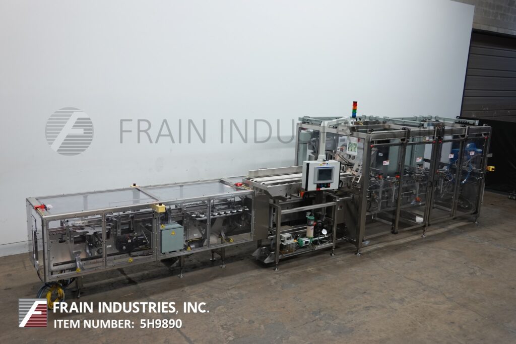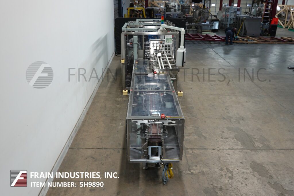 返回所有设备Adco, 9sbc -175- ss,全自动,水平,连续运动,开放式阳台设计,热熔胶箱。额定从25到175纸箱每分钟-取决于材料,应用和机器配置。纸箱尺寸范围:1“到6½长度;宽度1“至3¼”,深度3“至10½”。配有可调链上设置9”中心,8“宽x 90“长在进料输送机、链对准器(2)链产品在进料输送机与堆垛机(1)链拖着纸箱输送机设置9日”中心,与72年“长(3)皮带驱动的空白纸箱杂志,(2)头部旋转pic-n-place pre-break,产品/不管是不是纸箱,桶形凸轮装载机,Nordson ProBlue热熔胶系统,主要和小瓣关闭,24英寸长的压缩排出带式输送机段,Seko压力表,真空泵,润滑系统和联锁安全防护。控制面板采用A/B PLC和触摸屏人机界面。安装在重型基础框架与脚轮和水平腿。