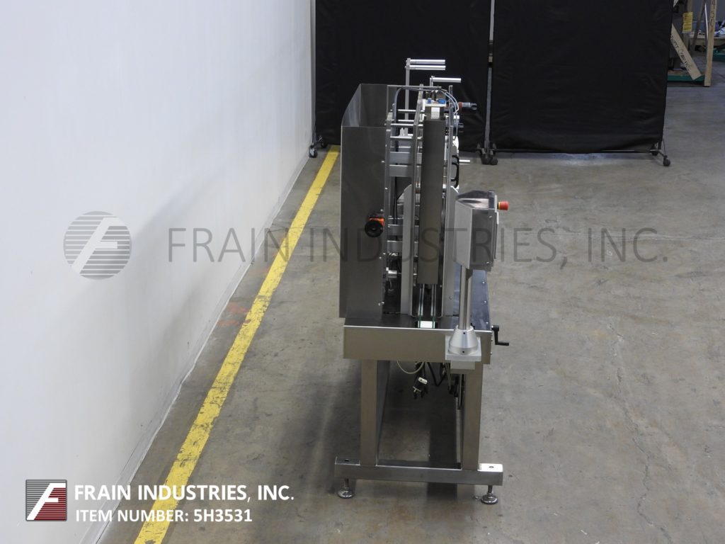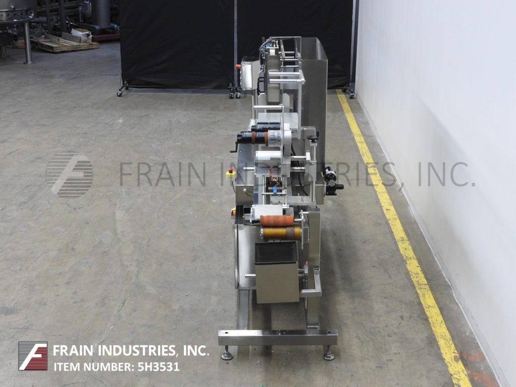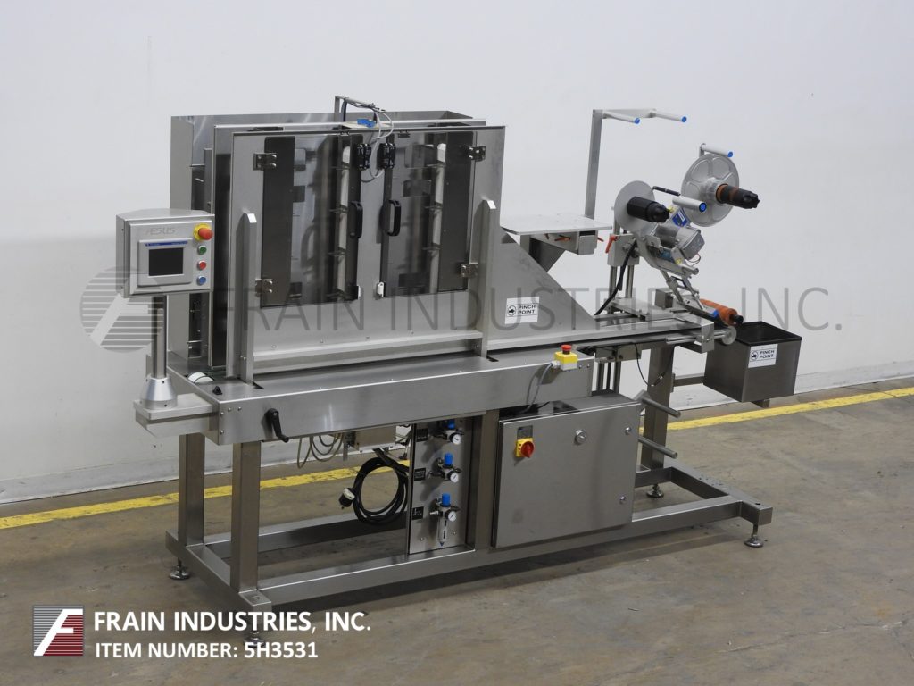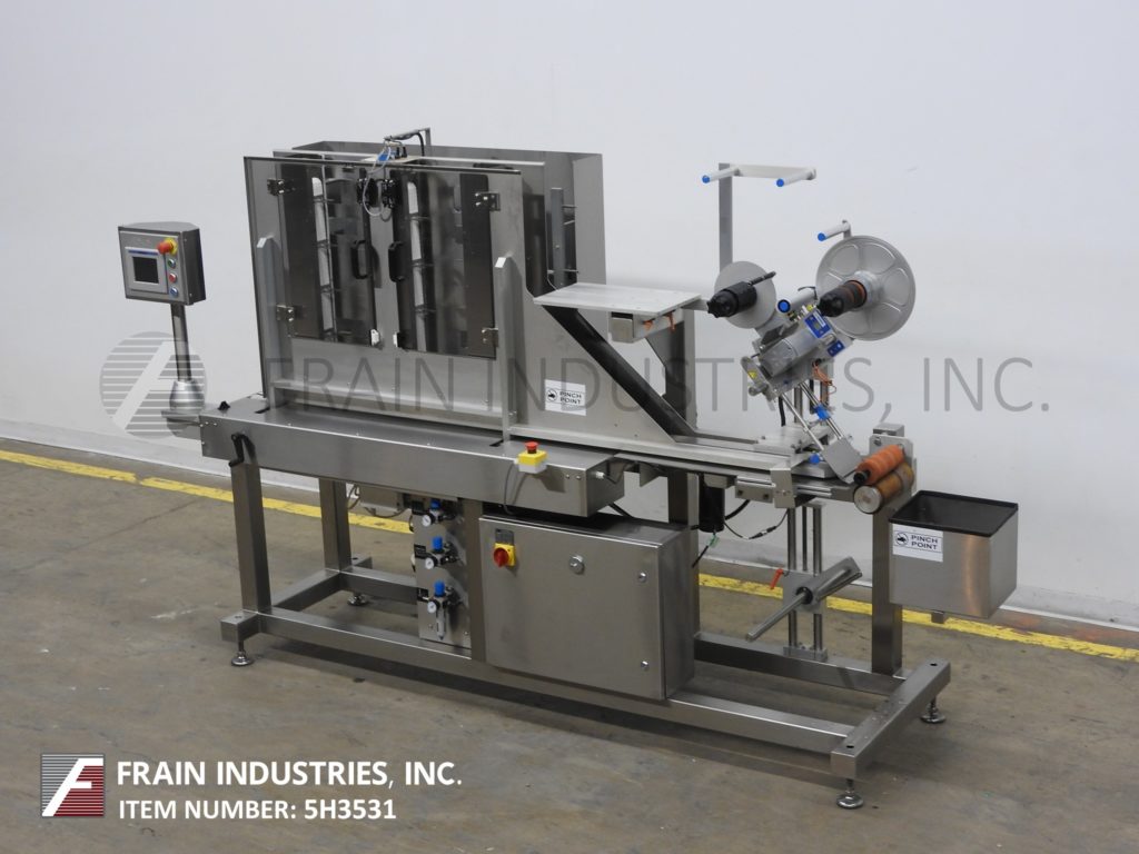返回所有设备Aesus Model Delta,自动,单侧或双侧伺服驱动,不锈钢,空预制袋标签系统,每分钟标签数 - 取决于材料,应用和标签涂敷器。配备双袋电梯两者都有24英寸长x 3-1 / 4“宽立式袋传送带,带2-1 / 4”x 2“长袋载体上6”中心,到52英寸长的双鹰皮带袋饲料腰带。HERMA Model H400-16L顶级贴件涂装器(也可以用底部贴标签器运行)。标准标签速度高达130英尺/分钟,每个应用袋数。标签宽度为6.3“,具有+ / - 0.01”的准确性。有12个“od标签卷轴和7”OD倒带卷轴,带7个“剥离板,8”顶/ 9“底部压缩辊有触摸板控制器,具有读出和30个预设功能,手柄可调节和10 x 12袋捕获垃圾箱。