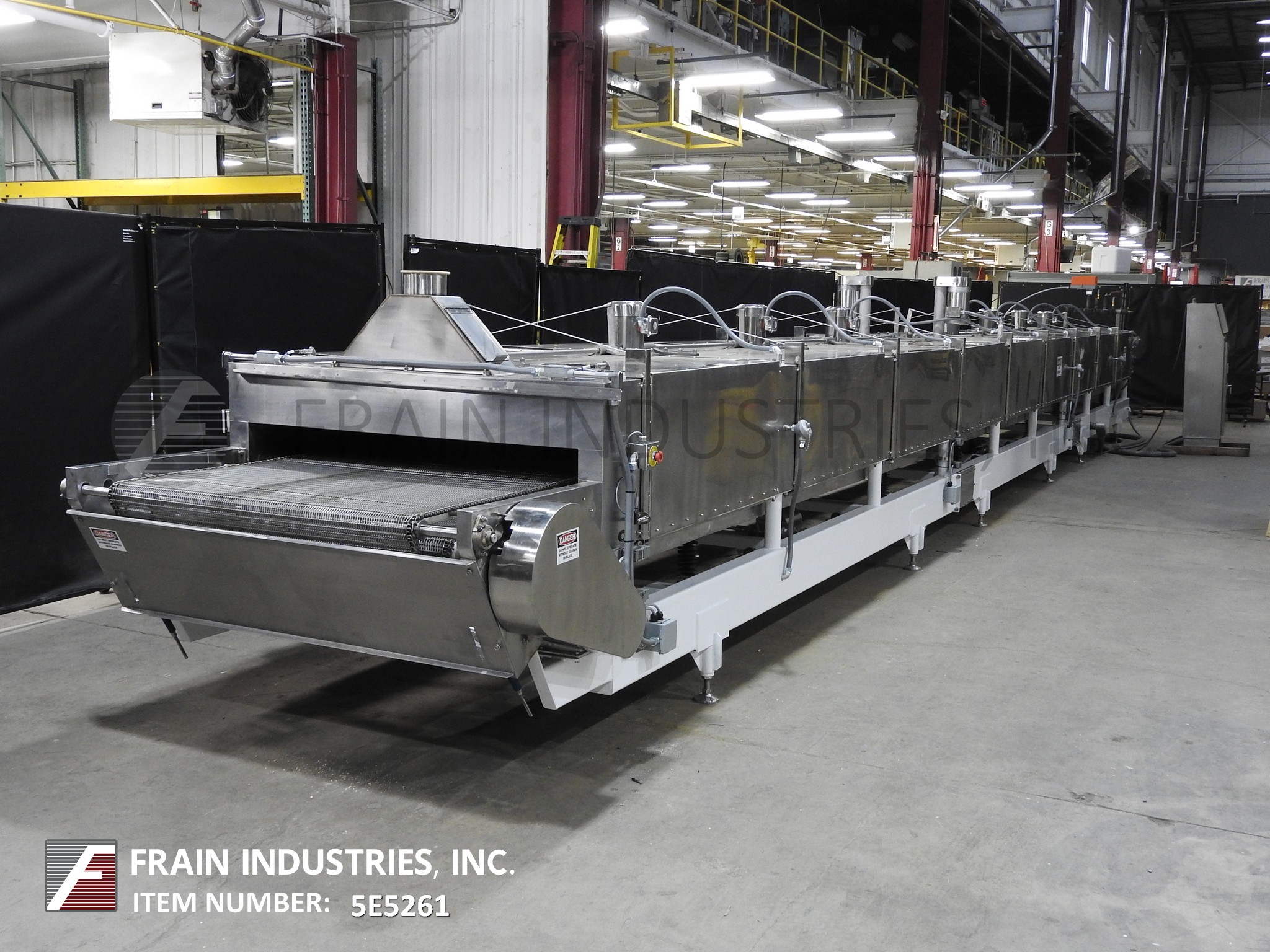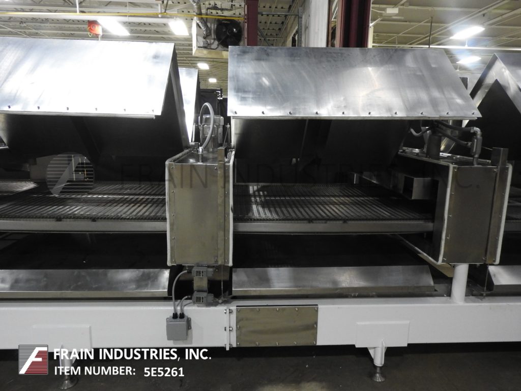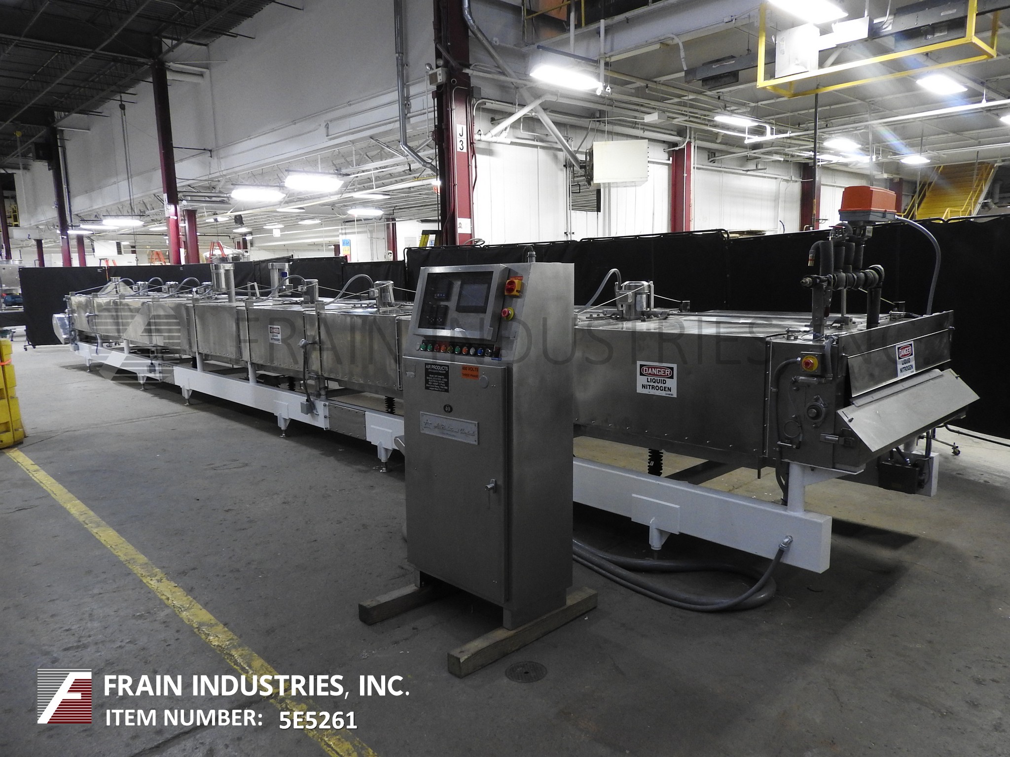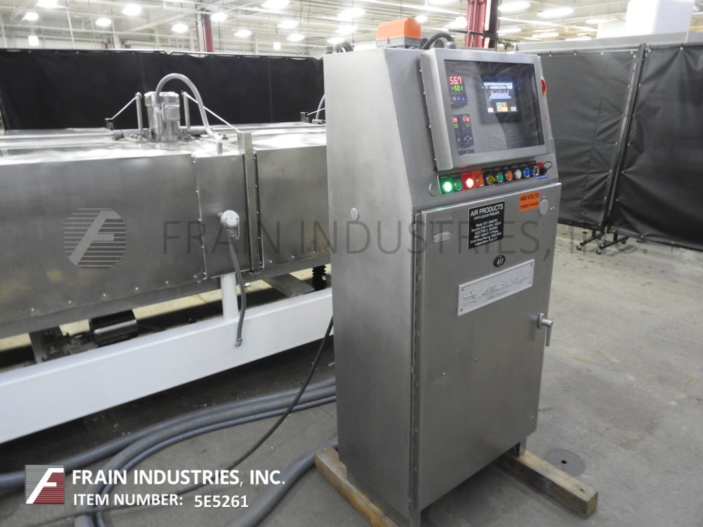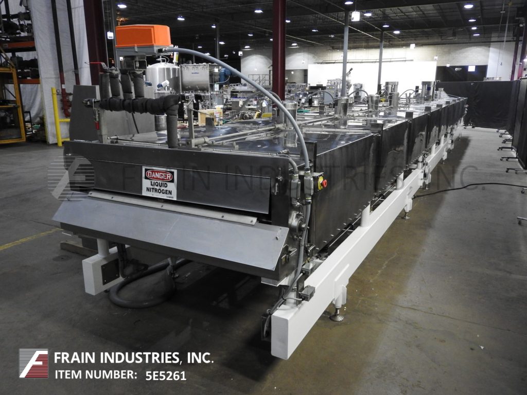 返回所有设备空气产品型号“的Cryo-快速” 48" 宽×50“长的液氮冷冻隧道以每小时的产物的量 - 这取决于材料和应用程序304不锈钢结构配有12个液氮喷雾喷嘴,48" 。。宽×50“长的不锈钢网眼编织产品输送带,30" 在进料负荷区域长的产品并具有4" 高的间隙进入隧道。(7)1 HP变速顶部安装的斯特林电再循环室风扇和(9)铰接翻转式隧道罩(各侧)。顶部排出管道和液体氮气入口,R-30的绝缘和具有NEMA 4门,和有机玻璃窗口的遥控器。安装在重型基础框架上。