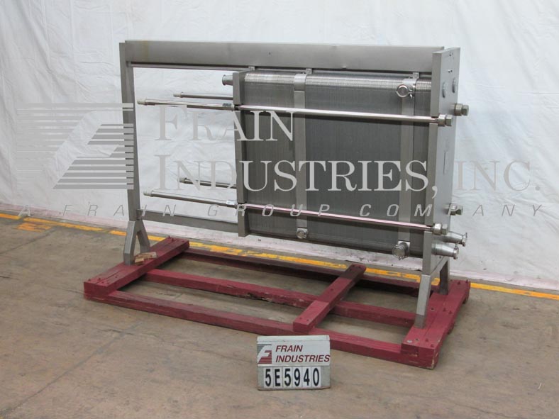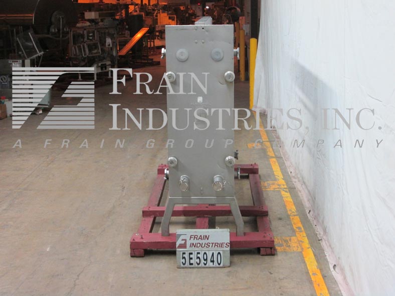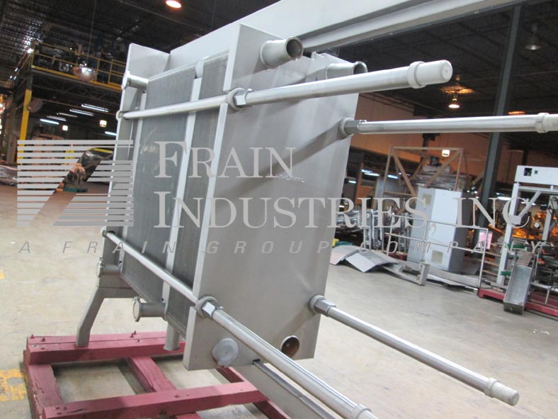 板和框架热交换器目前配备202板(20“x 56”)的表面积为1373平方英尺。最大工作压力145psi。9个3-1/2”和一个2-1/2”OD卫生接口。316不锈钢