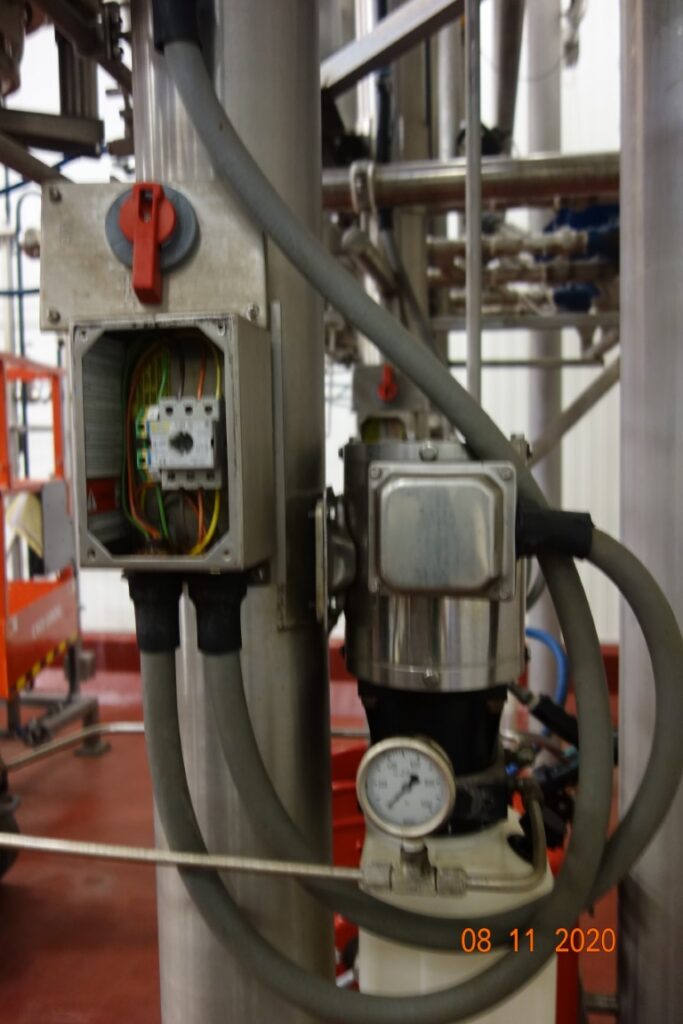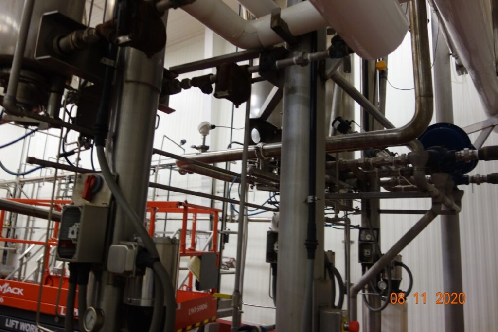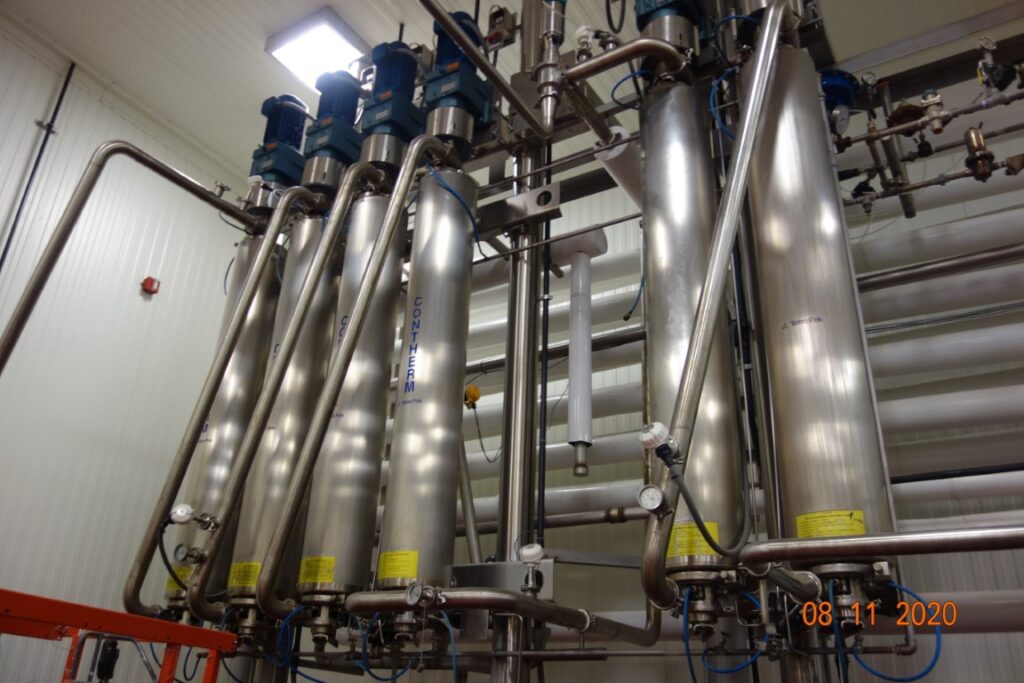 返回所有设备Alfa Laval,型号Contherm 6×11,垂直刮面式热交换器系统,采用(6)80″长不锈钢管,(4)用于加热,(2)用于冷却,每管每小时的产品量取决于材料和应用。接触部件均为不锈钢。每个加热管配备10½平方英尺的传热区域,工作温度范围为-30°F至300°F,顶部安装10 HP电机驱动器和3½”OD / 3″ID产品入口和出口端口每个气缸。主顶部安装控制面板与每个管的独立控制器有电机,速度和温度启动,停止控制与读数,也CIP系统控制器与启动,停止和e-stop控制。每个都安装在单独的不锈钢支架上。产品进入气缸通过较低的港口和向上流动通过气缸同时和媒体传播在逆流流穿过狭窄的通道和旋转刮刀刀片将产品从气缸壁,以确保均匀传热产品,是理想的食品以及其他应用程序。