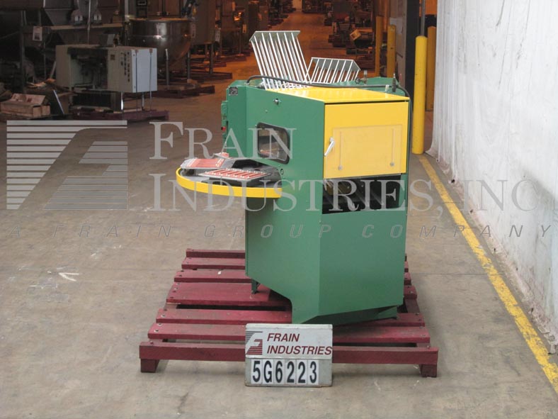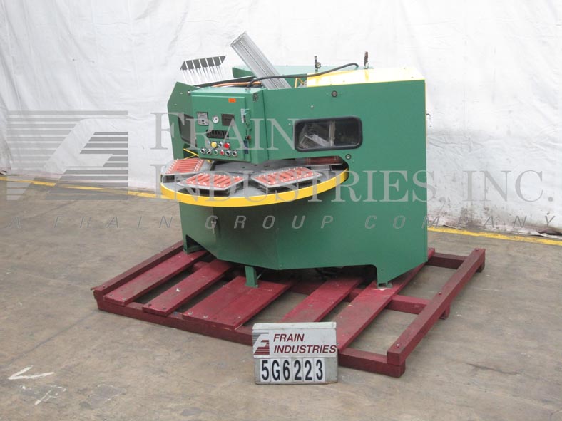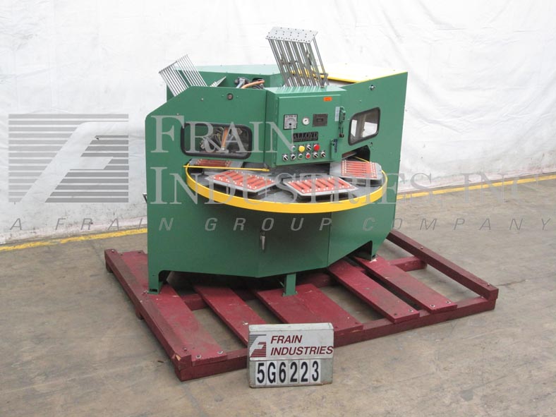 返回所有设备Alloyd,6S-CBE,自动,6站,旋转泡罩密封剂。每分钟最多20个循环,数字产品 - 取决于材料和应用。配备56英寸直径的旋转台,带有6个产品站,带有16“x 10”的封印压板区域,带式拾取器的泡罩和卡片进纸部分。控制面板已启动/停止,泡罩和卡料,真空和热控制使用静电消除器开关和e-stop。