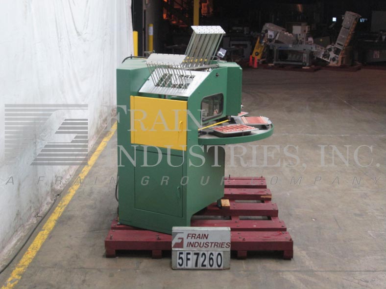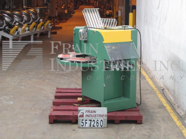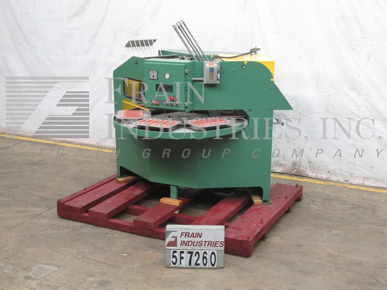 返回所有设备合金,自动,6个工位,旋转吸塑封口机额定每分钟20次,产品数量取决于材料和应用。配备56"直径转盘6个产品站,14" x 10"密封压板面积,吸盘真空摘取和真空泵。控制面板有启动/停止,吸塑和卡片馈电,真空和热控制与静电消除开关和e-stop。
