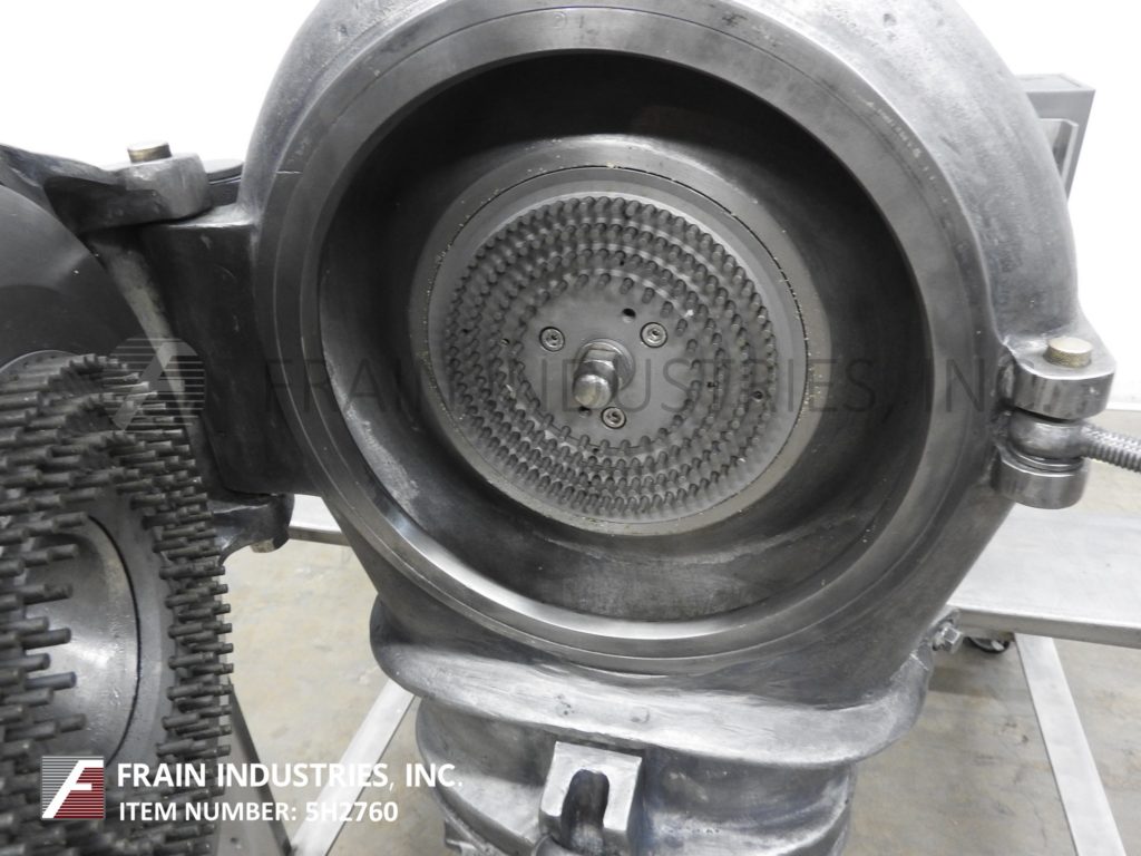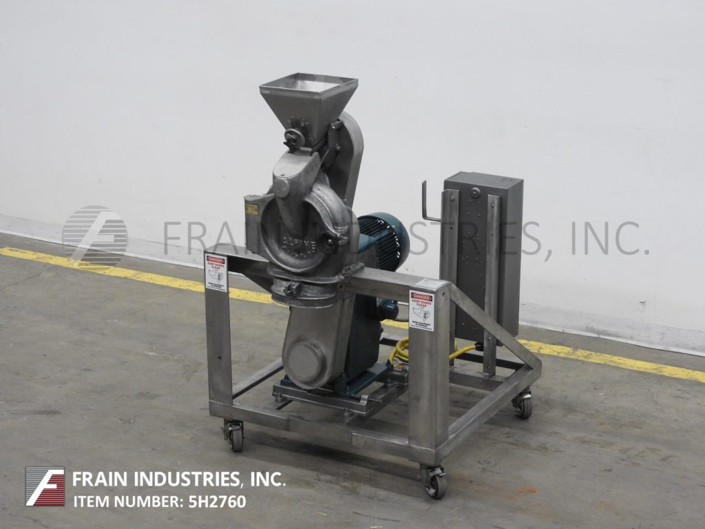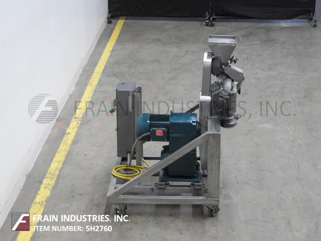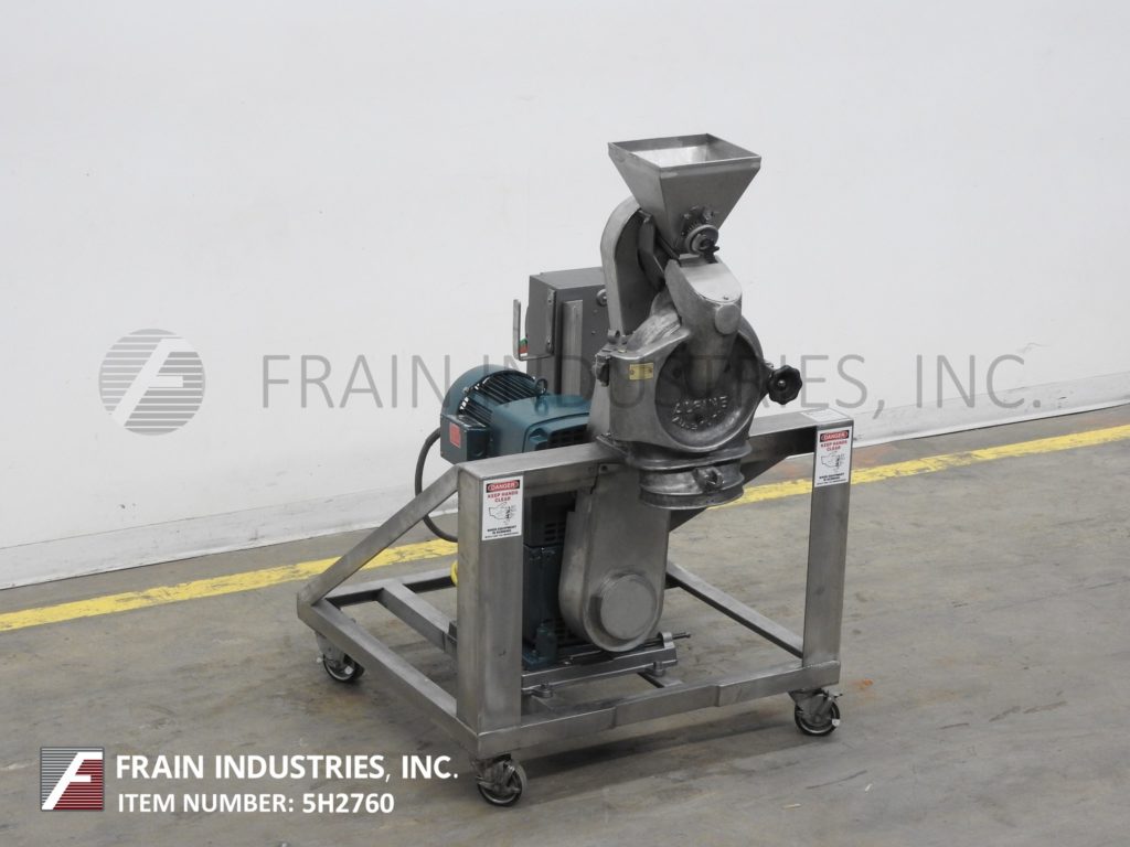 返回所有设备高山,160Z型紧凑,销磨每小时产品重量-取决于材料和应用。不锈钢接触部件。配备9"宽x 9"长x 8"深的产品料斗,6"外径转子/定子销盘由5马力电机驱动变速齿轮箱和9½"长x 6½"宽卸料溜槽26"地间隙。控制箱有按钮启动/停止控制。安装在不锈钢底座和脚轮。