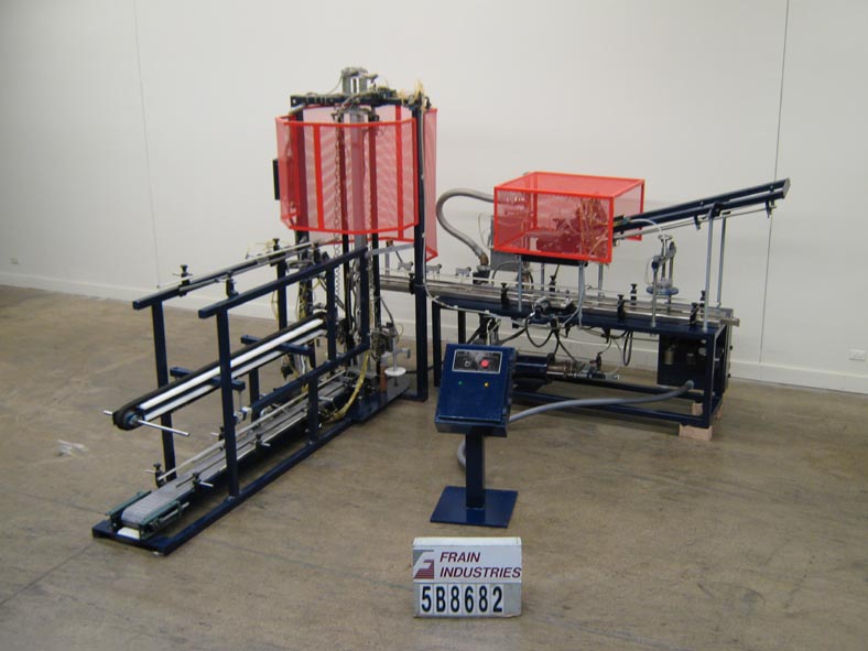 回到所有设备自动1 GAL脐填充物和LIDDER。专为用于重型浆料产品而设计,如;填缝,胶水和粘合剂。包括桶输送机,将桶的堆送到去登记站,其中桶被自动拾取并索引以填充输送机。递送到底部填充喷口的桶,盖子自动送入,然后将桶传送到盖子夯实站。包括约。7'长桶供给输送机和10'长填充盖夯拆压输送机。