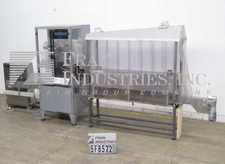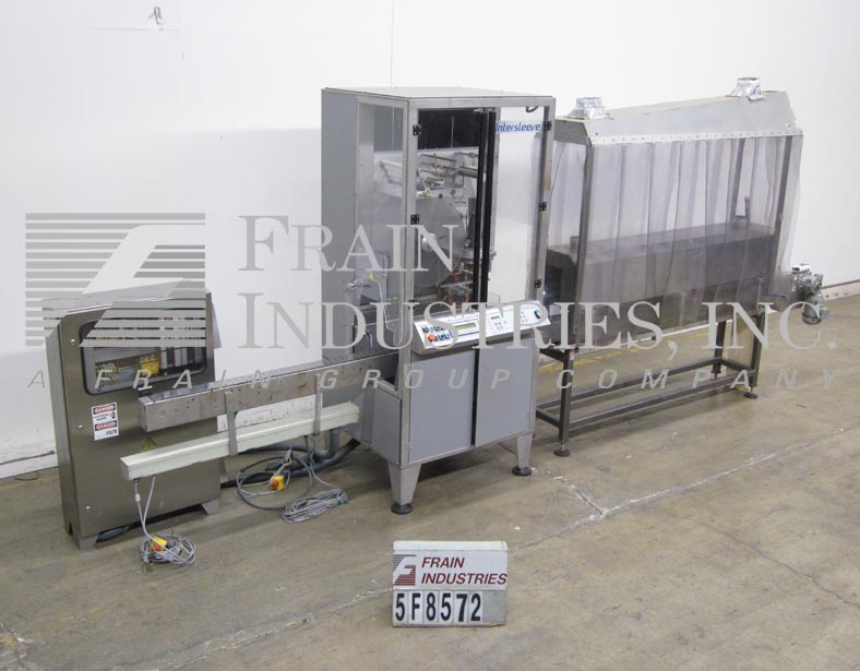 返回所有设备根据材料和应用 - 美国富士密封,型号Intersleeve 3100DE,自动,直接收缩套管施用器和蒸汽收缩隧道从每分钟50至400的容器额定。容器的尺寸范围:在直径1.4" 至6.4" ;1.6" 至14" 的高度,适当更换零件。配备220" 长×3-14" 宽不锈钢delron产品输送机,伺服驱动胶片供给,膜注册,传感器瓶存在,结束胶片检测器和套筒头与手曲柄对于套筒头高度调节和19" 直径的标签卷带盘。