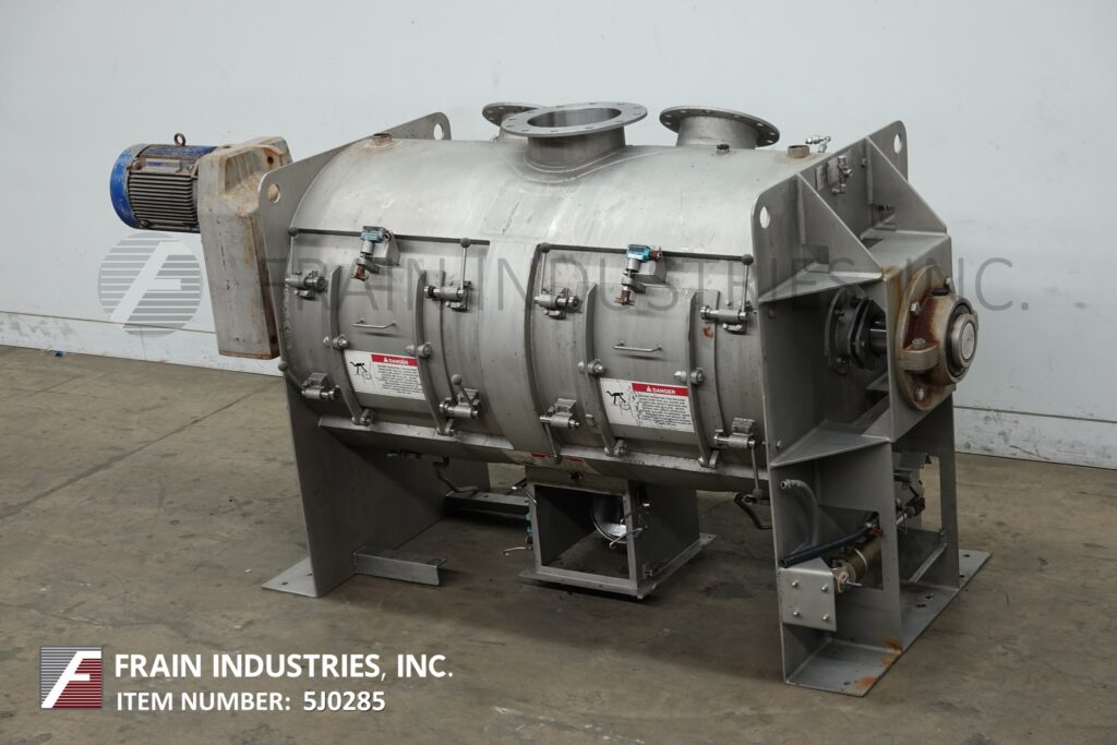 回到所有设备美国工艺系统,CPB-30型,总52英尺³,工作能力30英尺³,304不锈钢夹套犁式搅拌机,每小时可生产数磅产品-取决于材料和应用。内室尺寸:直径40英寸x长度72英寸。配备(8)台由20马力驱动的犁,(2)侧室安全联锁入口门,法兰22" OD / 18" ID中心底部排放,带有安全篦子和气动阀,具有2"地板间隙。安装在重型框架上。