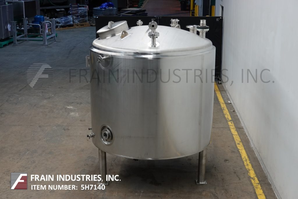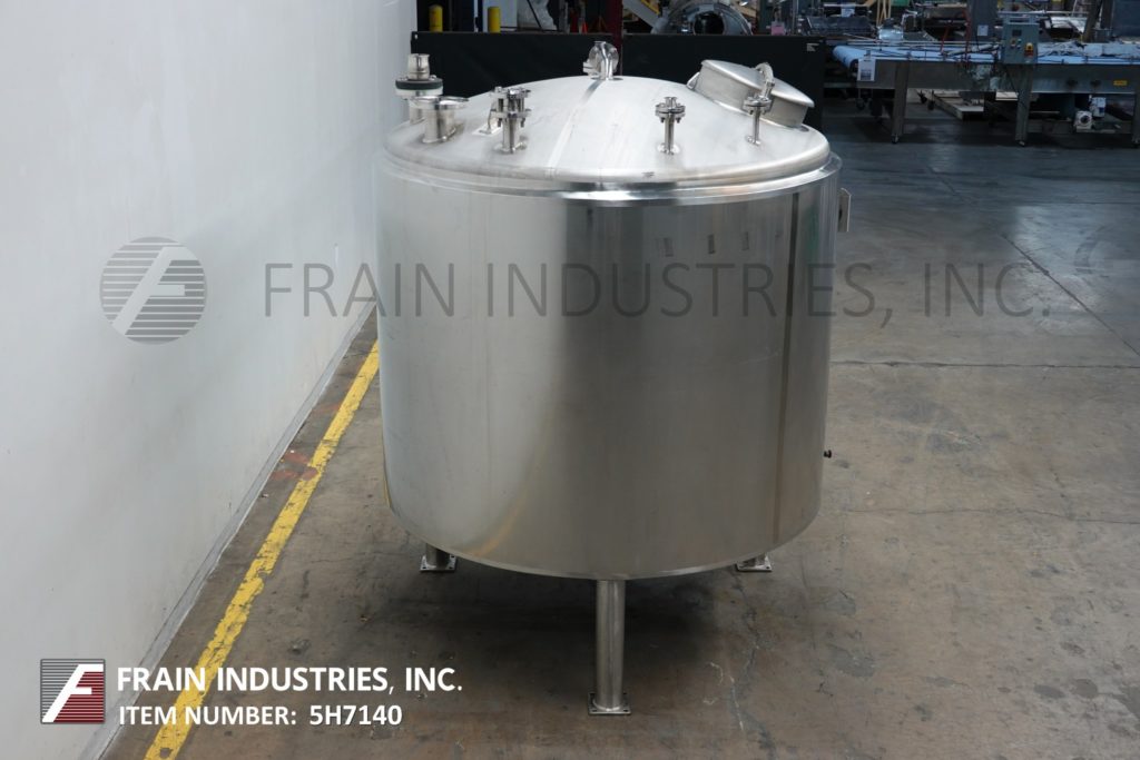 返回所有设备阿帕奇,1000加仑,316不锈钢,绝缘单壁储罐。容器尺寸:直径72英寸x直壁60英寸。带有18英寸人字形和各种法兰端口的圆顶顶部。盘子底部有3½“OD / 3”ID三钳放电与9“地板间隙。配备了温度计套管。安装在(3)不锈钢支腿上。