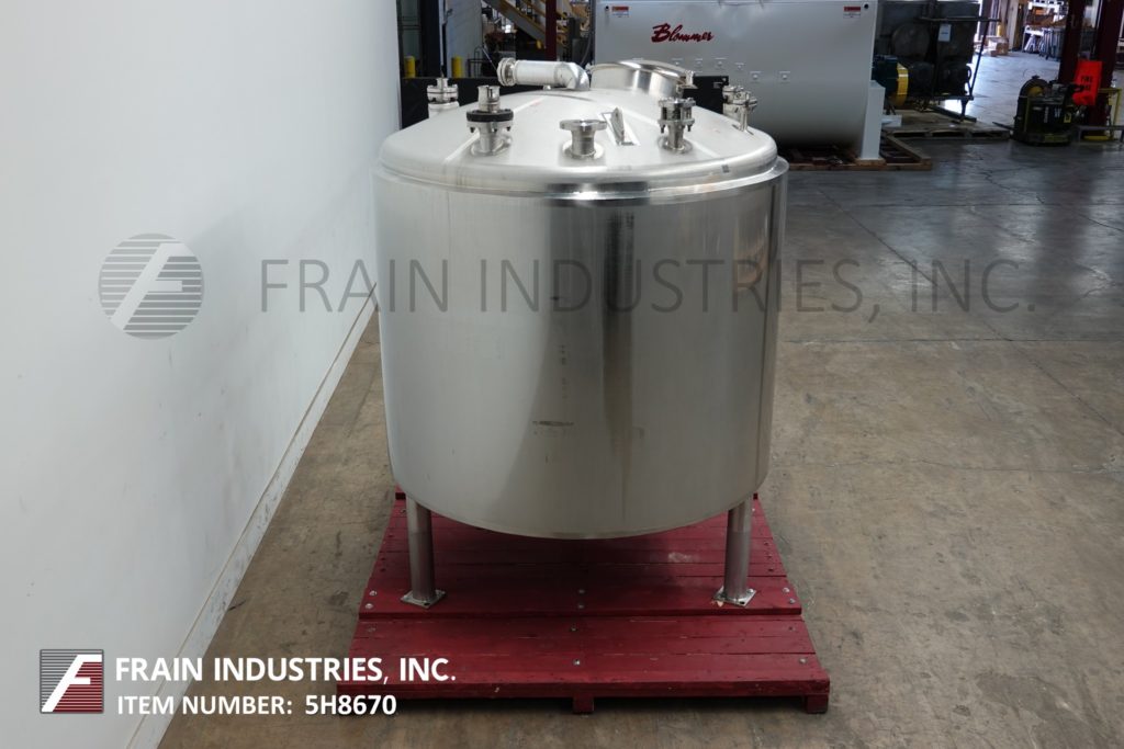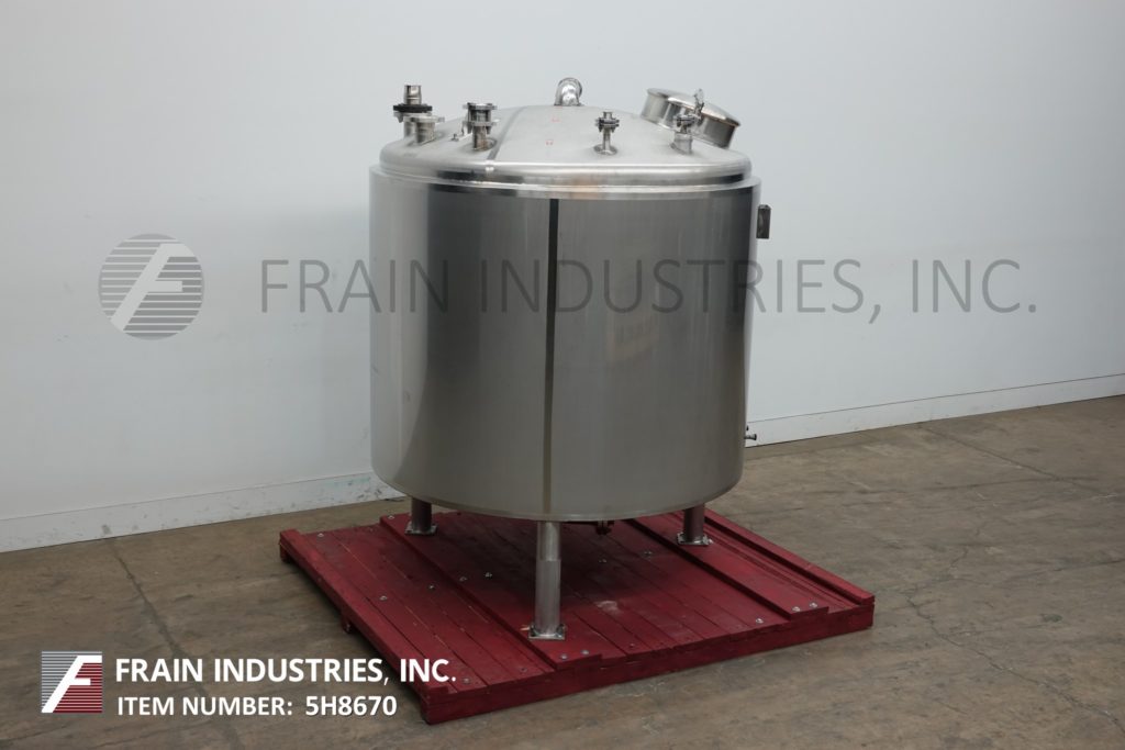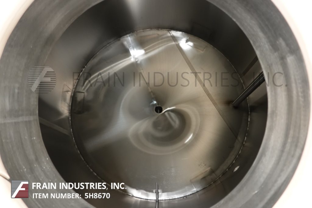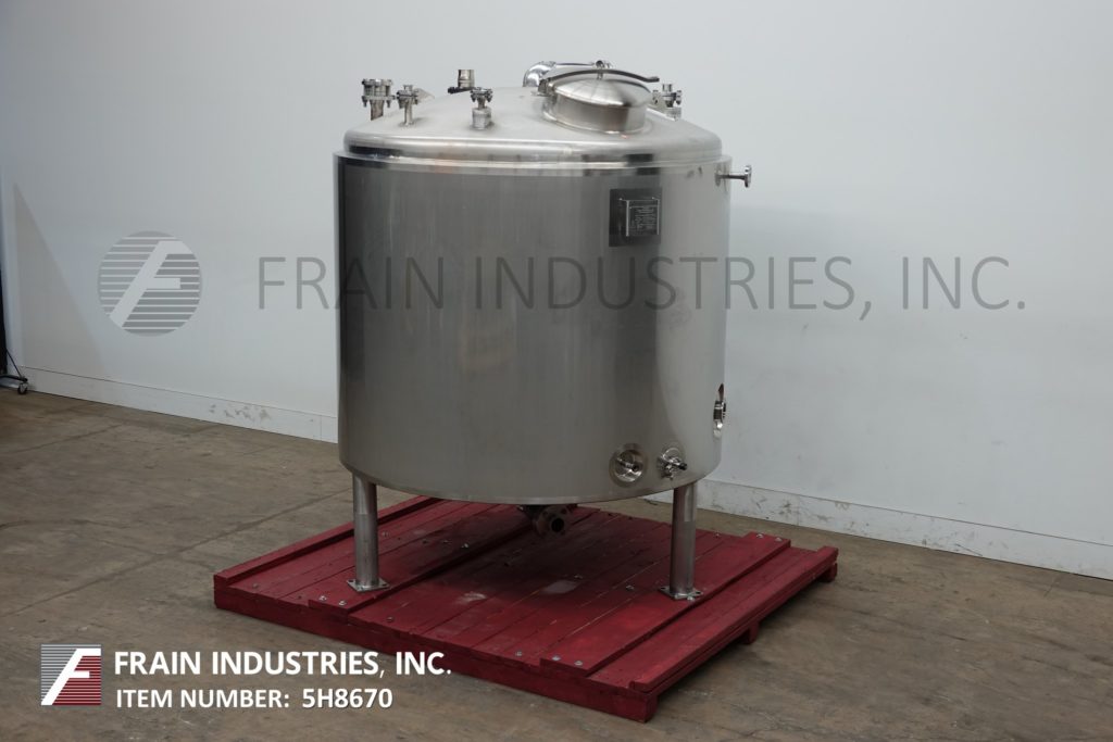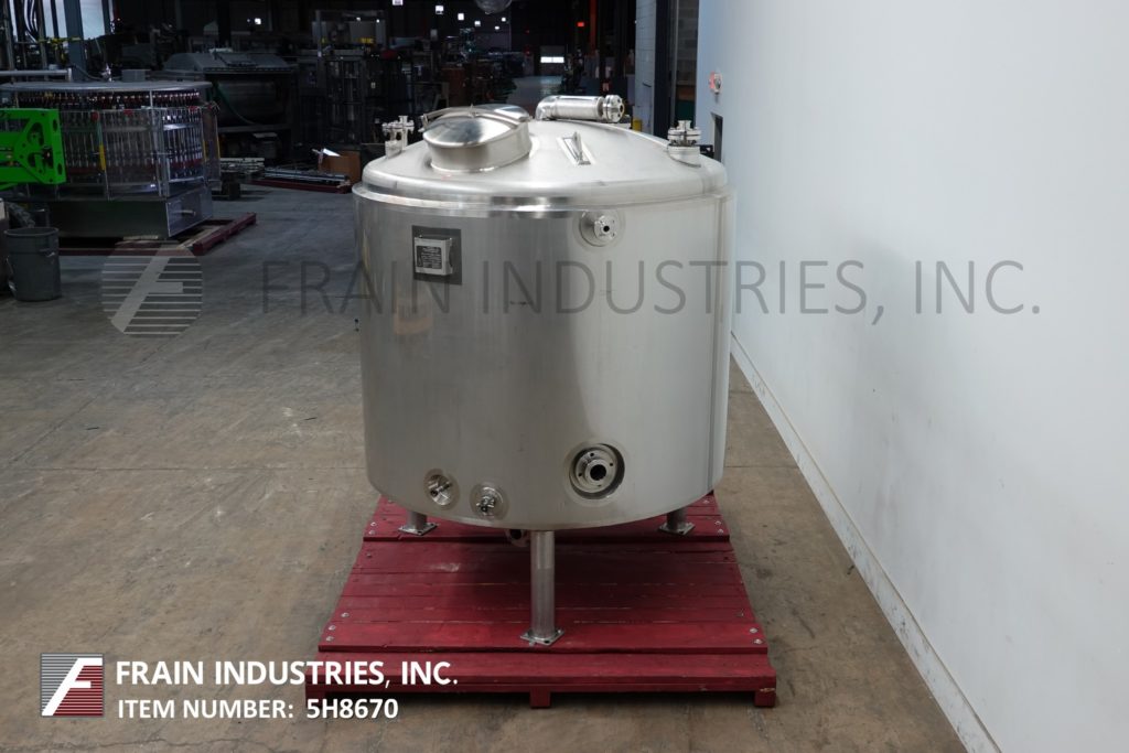 返回所有设备阿帕奇,容量1000加仑,不锈钢绝缘罐与316不锈钢接触部件。容器尺寸:72"直径,60"直壁。配备圆顶,18”外径翻转顶部手动方式,2”外径/ 1½”内径三夹接头和温度计套管提供CIP喷球。盘子底部有3½“OD / 3”ID中心放电与9“地面间隙。