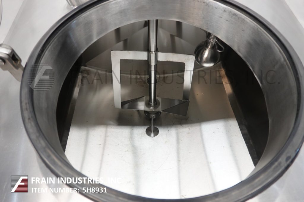 Back to All EquipmentAPV, four chamber, 304 stainless steel insulated, 800 gallon flavor tank. Each chamber is 200 gallons with inner dimension of 42" long x 42" wide x 40" deep. Equipped with lift up cover, safety grate, prop agitation powered by a ½ hp drive and CIP spray ball supplied by a 2"OD / 1½"ID Tri-Clamp fitting. Slant bottom has 2½" OD / 2"ID Tri-Clamp side bottom discharge with 10" floor clearance. Mounted on stainless steel legs.
