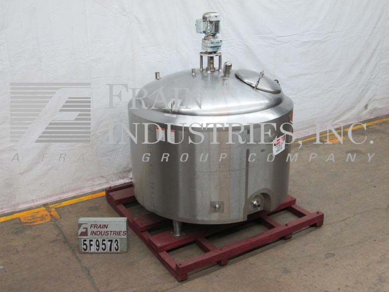 返回所有设备APV Crepaco, 500加仑,304不锈钢保温搅拌槽。配备68" ID x 43"直壁。圆顶顶部,有18”ID人孔翻转/夹紧下盖,桥式桨扫式搅拌与双喷雾球和固定挡板,2”和3”外径卫生顶部端口和夹紧在通风口与屏幕。温度探测器端口。斜底,外径2英寸,螺纹侧底排放,地板间隙6英寸。安装在(4)不锈钢支腿上。
