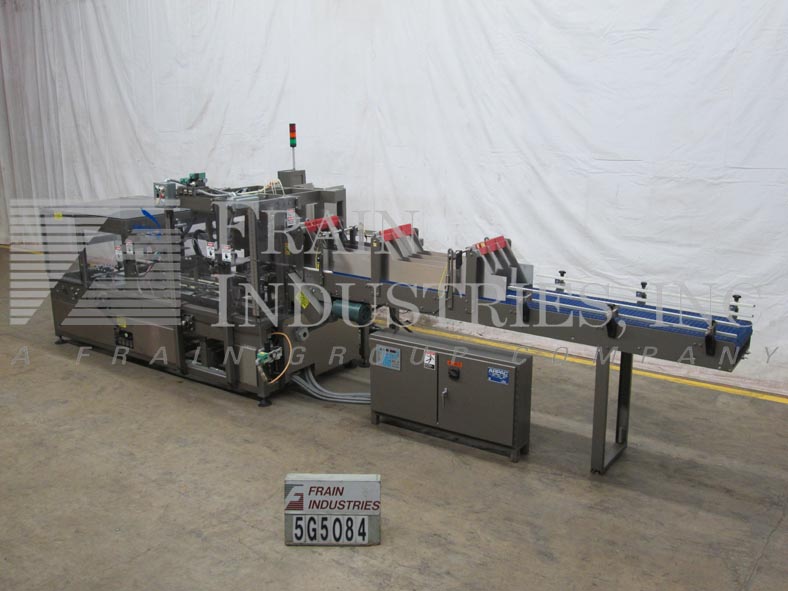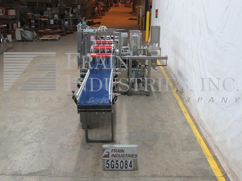 返回所有设备ARPAC型号DPM-1000托盘以前/下拉封装机评分为每分钟5至20件案例 - 取决于材料,应用和环境。容器和案例尺寸范围:每个应用程序。配备18英寸宽的138“长产品进给式输送机,带3个可调节的产品车道,23英寸高纸箱杂志,带2个头部挑选的地方,孟买门,带有升起的软液滴,68英寸长的链式盒式输送机与Nordson热胶密封,18“冰箱放电。另外,AB PLC,PLS 5000面板,ARPAC数字控制面板和lexan保护安全联锁。