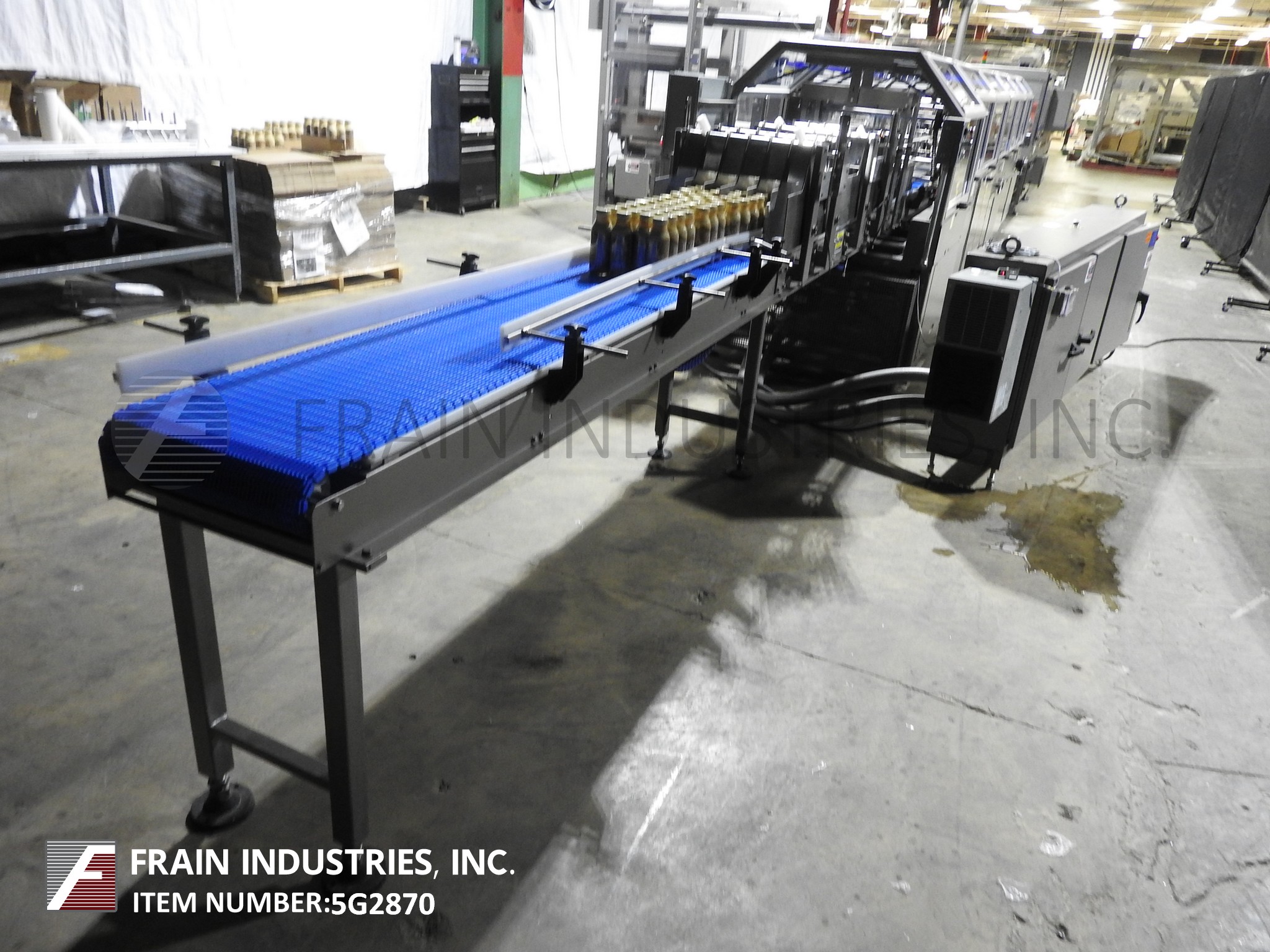 返回所有设备Arpac型号TS2152RC / 65TW-28,自动连续运动,伺服驱动,托盘前/装载机收缩捆扎机和隧道额定从10到60托盘每分钟-取决于材料和应用。托盘:尺寸范围:4-3/4"至20"长度;宽度7-1/4"至16-1/4";4"到12-1/2"高度与适当的更换部件。配备153" x 16-1/2"柔性连杆产品在饲料输送机与车道分度器,星轮旋转飞行杆分度饲料系统与26"宽飞行杆在36"中心和顶部压杆。114“长x 16-1/2”宽扩展动力空白盘进料输送机已经结束解除部分与真空吸盘安装空托盘杂志选n,顶推板104”长拖着托盘成型、封口、卸料输送机、诺信(2)枪热熔胶系统,主要/次要皮瓣意见和护栏压缩部分。