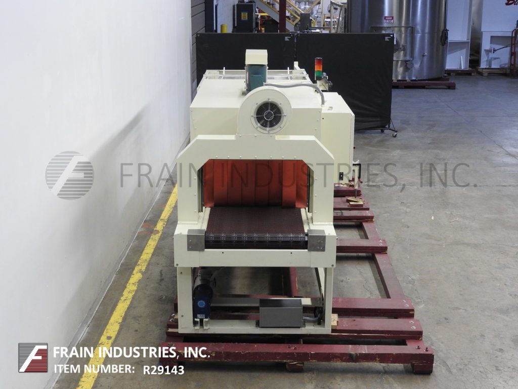 返回所有设备Arpac,型号105TW28,内联,收缩捆扎机。额定每分钟1到30捆-取决于材料,应用和机器配置。配备20"宽x 70"长滑扭矩饲料输送机,28"宽热刀密封钳口12"垂直旅行和25¼"宽x 12"长转移输送机收缩隧道。70"长收缩隧道有29"宽x 17"高总孔径,110"长x 29"宽产品输送机和冷却风扇放电。控制面板带有AB控制器,带有读数的触摸板控制,启动/停止/ e-停止/手动密封按钮控制和密封条和隧道的数字温度控制。安装在重型基础框架。