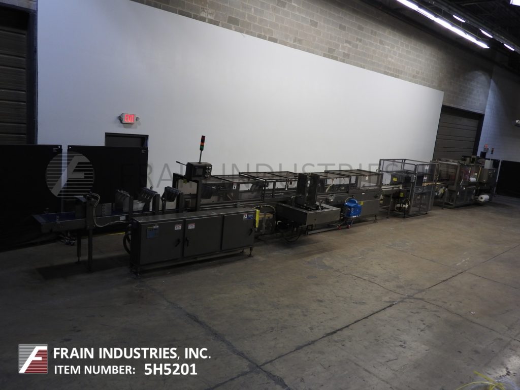 返回所有设备ARPAC型号TS2212 / TS60 / 45TW-28,齐全,自动,持续运动,伺服驱动,托盘成型,包装,封装,从5到45托盘每分钟额定电流,每个纸盘数量 - 取决于材料和应用。纸盘尺寸/每种申请。系统由ARPAC型号2212托盘前,包装机和热熔胶封口机,具有120“长X 18”宽的产品,其中(4)车道分隔器到(4)48“长x 2-1 / 2”宽产品分组输送机侧面安装68“宽X 32”高空白托盘盒,具有(2)吸盘PIC N放置到托盘成型,包装和密封部分,具有(4)106“长×1/2”宽透明压缩/放电传送带部分坐落于12英寸的纽尔森热熔胶单元,带有主要/小襟翼近挡板。ARPAC型号TS60双压机60“在进给输送机中的长滚子,21”宽x 1-1 / 4“OD滚筒设置在1-1 / 2上“有1/8”差距的中心。整理系统具有70“长滚子部分,具有22英寸宽x 1-3 / 4”OD滚筒,设置在2-1 / 2“中心,具有1/2”间隙,54“长x 16”宽upstack部分