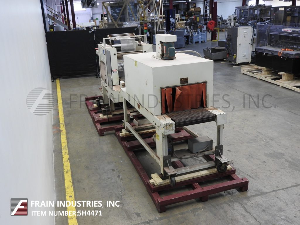 返回所有设备Arpac, 105-24型,内联,间歇运动,收缩捆扎机和隧道。额定每分钟5到20捆-取决于材料和应用。配备22"宽x 70"长的饲料输送机,24"宽薄膜卷,25"宽密封钳口13"垂直旅行,22"宽x 22"长的Intralox转移输送机收缩隧道。单区收缩隧道有24”宽x 15”高总孔径x 60”长90”长x 24”宽Intralox产品输送机。控制面板有触摸板控制和读出,启动/停止/ e-停止/手动密封按钮控制和数字温度控制密封条和隧道。安装在重型基础框架。