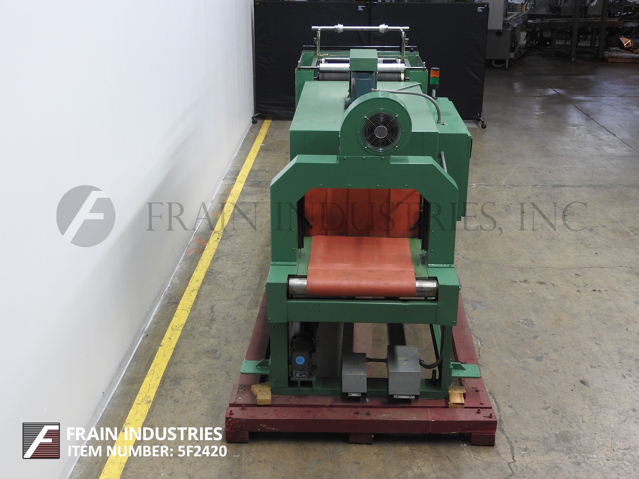 返回所有设备自动,内联,收缩捆扎机。配有宽度可调的进料输送机,输送输送机,25英寸宽的密封爪和11英寸的垂直行程,顶压,侧压导轨和输送到隧道。隧道尺寸:29"宽x 17"高孔径;70”的长度。配备了一个24“宽x 100”长的输送机,温度和空气流量控制,和排放冷却风机。另外,具有联锁的Lexan安全保护功能。速度为每分钟15 - 20捆-视材料,应用和机器配置而定。