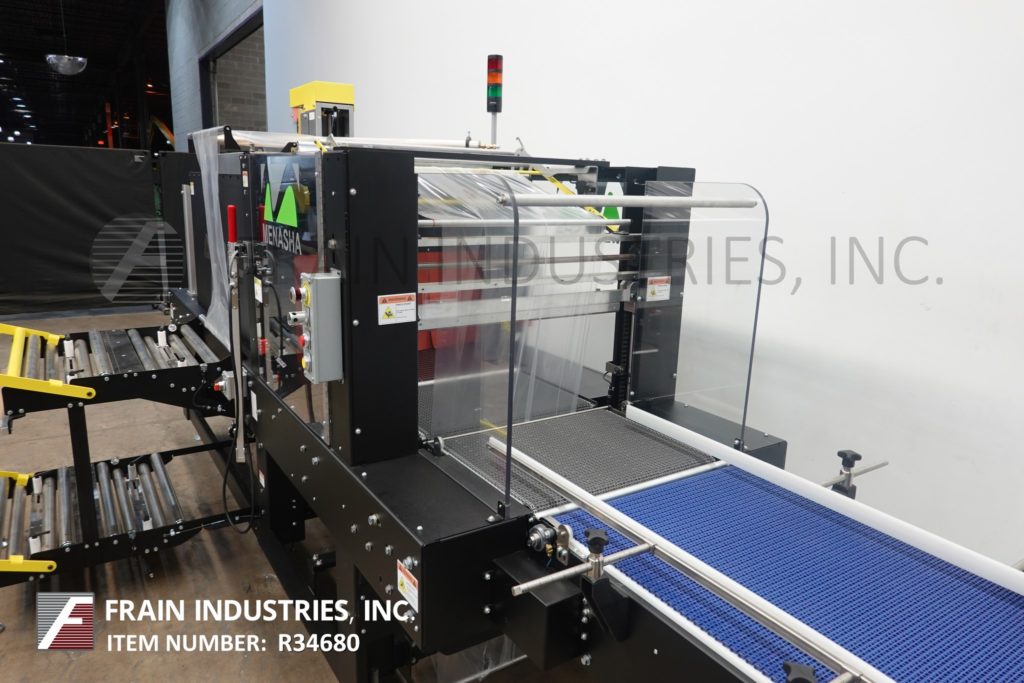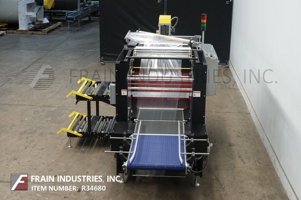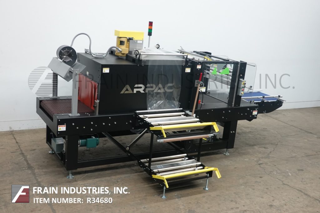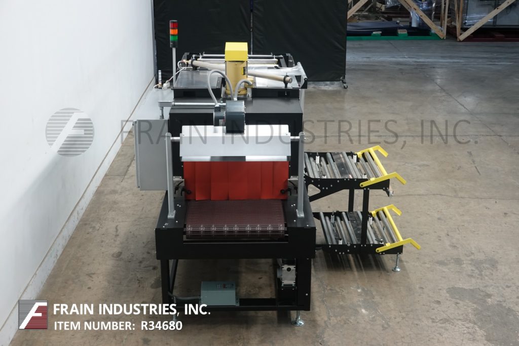 返回所有设备Arpac, 25TW-28型,内联,间歇运动,捆扎机和集成收缩隧道。配备20英寸长× 24英寸宽的饲料输送机,28英寸宽的热脉冲密封爪13英寸垂直行程,侧装膜架和拼接站,膜卷宽度可达27英寸;和14“外径在3”核心与18“长x 24”宽转移输送机进入单一区域收缩隧道29“宽伸缩链接输送机和32“宽x 16”在高度孔径和67“长腔,顶部安装风机电机和冷却风机在排放。控制面板具有艾伦-布拉德利控制器与PanelView操作界面和彩色触摸屏,信息显示和自诊断,低膜警报,旁路模式-允许产品通过机器没有被包裹,没有加热隧道。安装在重型框架上,配有状态灯杆和联锁安全防护装置。