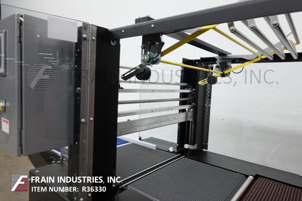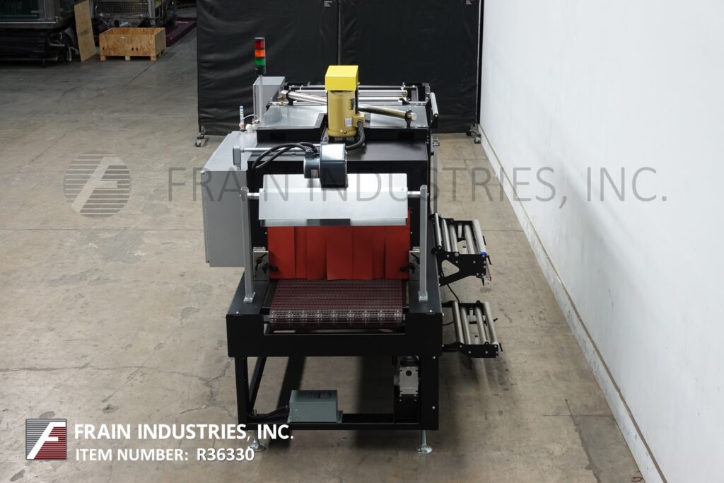 回到所有设备Arpac,型号25TW-28,在线,间歇运动,捆扎机和集成收缩隧道额定高达25束每分钟-取决于材料和应用。配备34“长x 24”宽的饲料输送机,28“宽热冲击密封爪13”垂直行程,侧面安装薄膜架和拼接站,薄膜卷的宽度可达27“;和14"外径3"芯。38“长x 24”宽的传输输送机通过密封进入单区收缩隧道,29“宽的柔性链接输送机和32”宽x 16”高的孔径和67“长的腔室,顶部安装鼓风机电机和排气冷却风机。控制面板有Allen-Bradley控制器,带有PanelView操作界面和彩色触摸屏,信息显示和自诊断,低膜警报,旁路模式-允许产品通过机器而不被包裹,不加热隧道。安装在重型车架上,带有状态灯条和联锁安全防护。