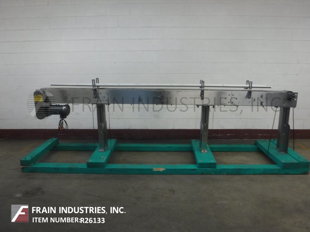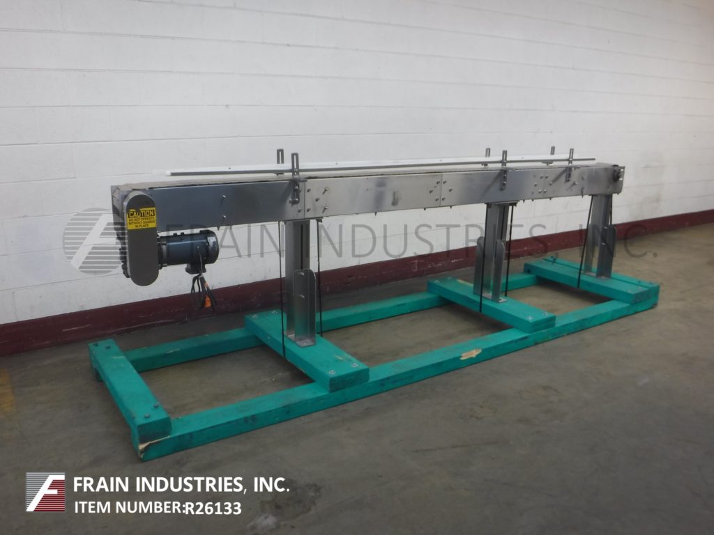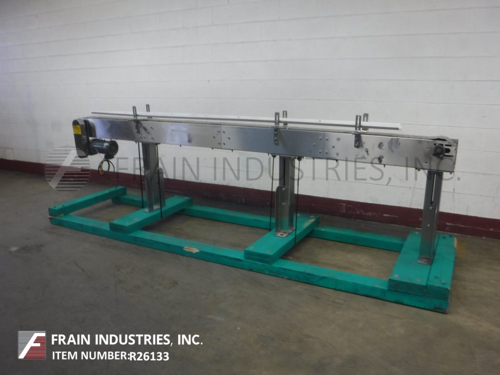 不锈钢,6" 宽×138" 长,聚甲醛树脂台面输送机。配备有35" 进给/排出高度。由一½Hp的90V直流驱动。