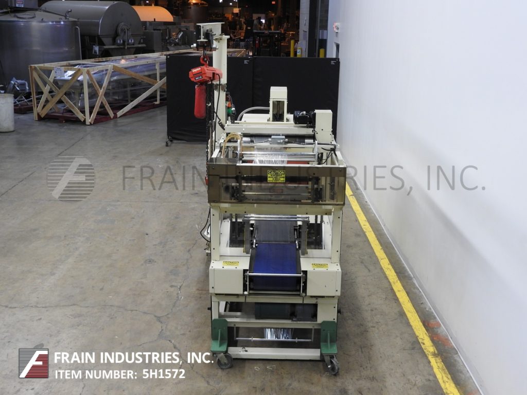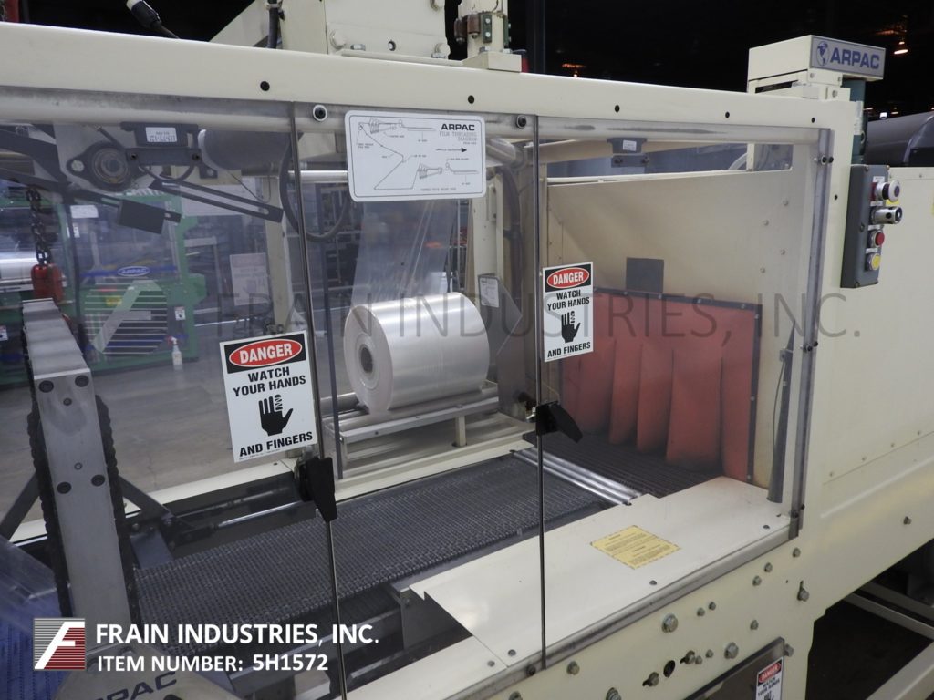 返回所有设备Arpac, 55GI-20CX型,内联,连续运动,收缩捆扎机。根据材料、应用和机器配置,额定每分钟10至55束。配备13“宽× 25”长的饲料输送机,(2)21“宽薄膜卷支架与薄膜拼接站,薄膜提升机,21“宽步行梁密封钳与11“垂直旅行和13“宽× 38”长的转移输送机收缩隧道。50"长单区收缩隧道有21 "宽x 16"高总孔径,70"长x 20½"宽产品输送机和冷却风扇放电。控制面板带有AB控制器,带有读数的触摸板控制,启动/停止/ e-停止/手动密封按钮控制和密封条和隧道的数字温度控制。安装在重型基础框架。