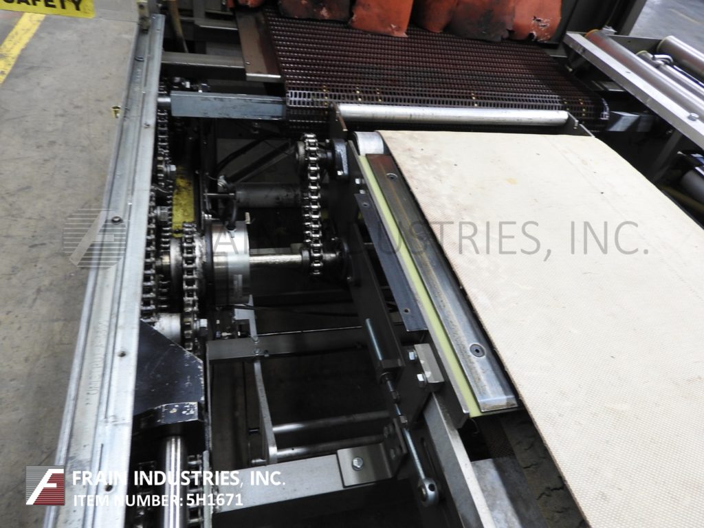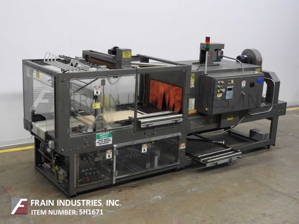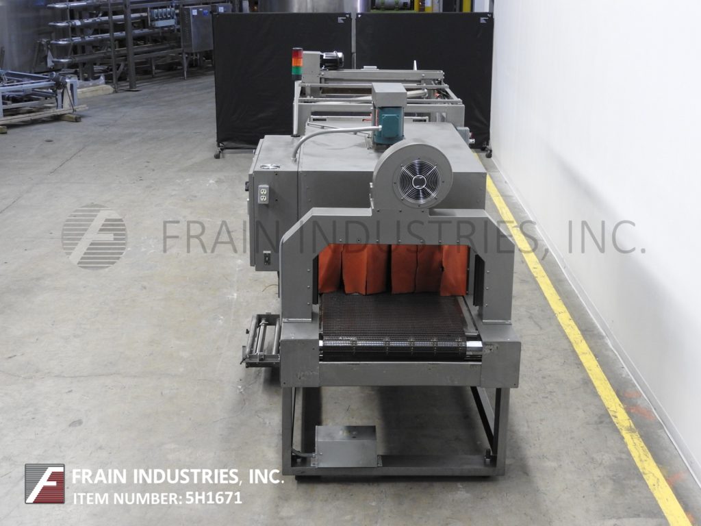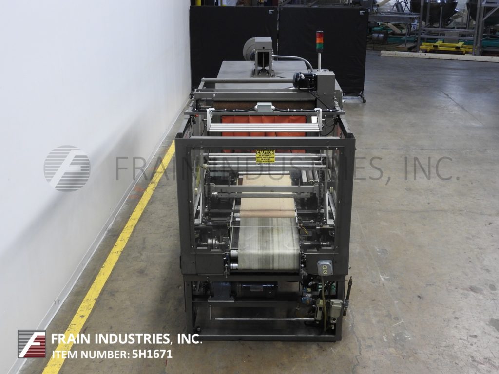 返回所有设备ARPAC,型号55TW-28,内联,连续。收缩Bundler每分钟10到55封捆 - 取决于材料,应用和机器配置。产品尺寸范围:6“至16”的长度;6“到18”的宽度;高度2“至10”。侧面安装的单卷膜辊:27“宽度;直径为14英寸”;3“核心。配备26”长X 20“宽进给输送机,30英寸宽密封钳口,10”垂直行程,40“长x 19”宽传输传送带到单区域收缩隧道,30“宽X 18“高总孔径和70”长隧道,带112“长x 29”宽柔性柔性环节,带顶部安装鼓风机的产品输送机,并具有放电端冷却风扇。控制面板有一个/ b触摸板控制和读数,开始/停止/ e-停止/手动密封按钮控制和数字温度控制器,用于密封杆和隧道冷却风扇ON / OFF开关和Statis Light Bar。