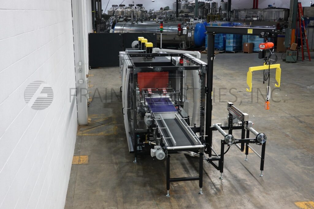Back to All EquipmentArpac, Model BPTW-6000, Automatic, inline, continuous motion, registered film, shrink bundler and tunnel. Rated up to 60 bundles per minute – depending on materials and application. Product size range: 5" to 12" in Length; 6" to 20" in Width; 3" to 12 in Height. Film specs: to 26" in Width; to 20" in Diameter; on 3" core; can handle clear or printed film of 1.75 to 2.5 mil low density polyethylene. Equipped with dual side mounted film racks, splicing bar, infeed spacing conveyor, film registration, 28" seal bar and bottom overlap seal, (3) zone shrink tunnel with adjustable flow vents, variable speed blowers and cooling fans on discharge. Control panel has A/B controller with touch screen HMI and statis light bar. Mounted on heavy duty formed and structural steel frame with safety guarding.