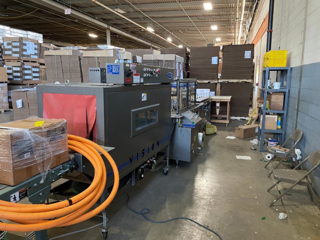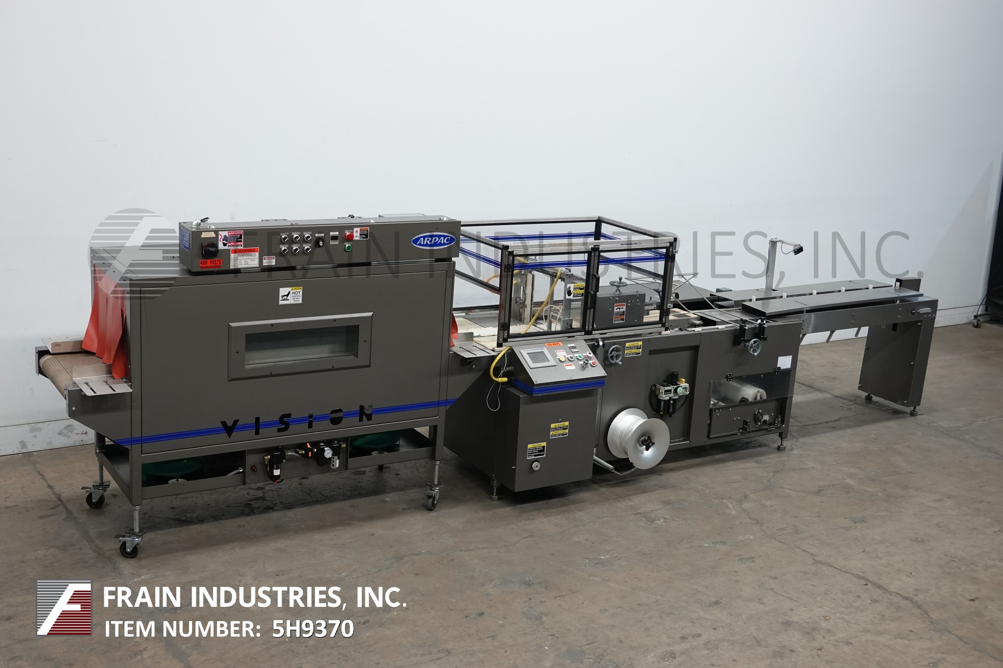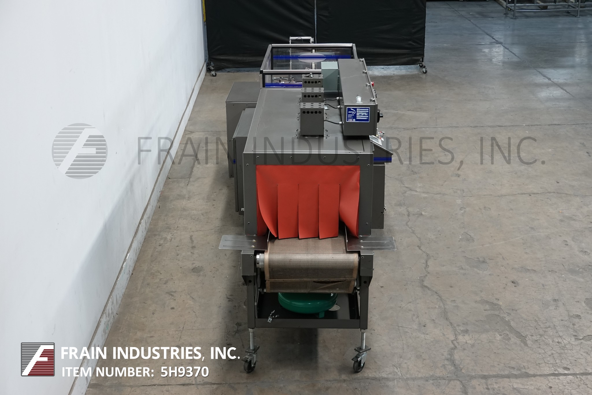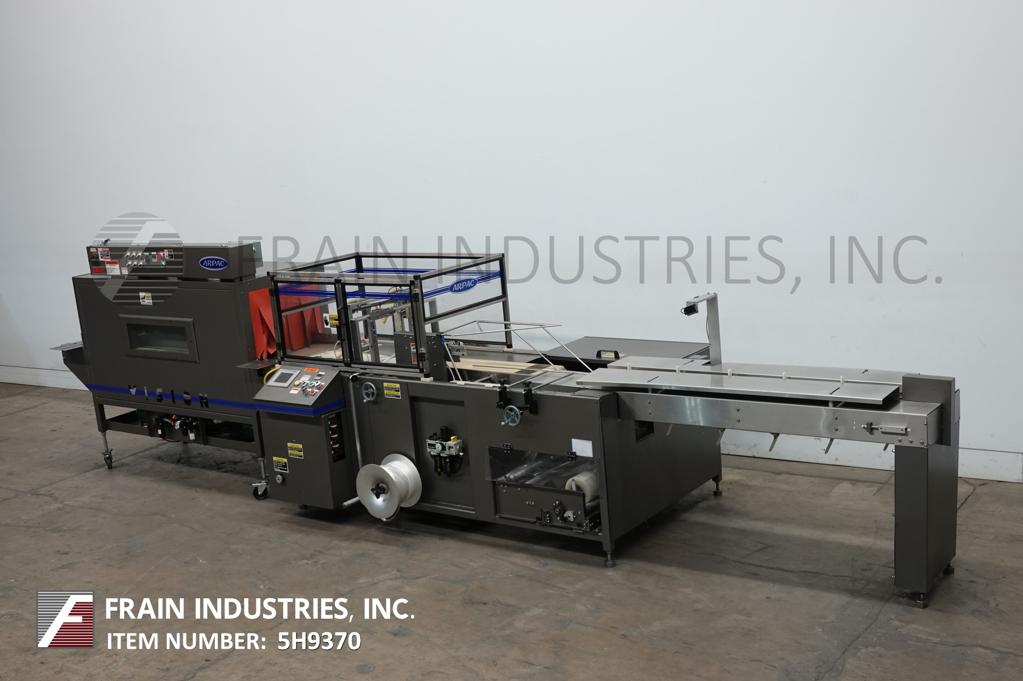 返回所有设备Arpac型号TS37 / VT122272,自动,流动,侧密封收缩包装和热通道每分钟产品数量-取决于材料和应用。产品尺寸范围:带垂直位置的密封条:长度3-1/2"至60";宽度为2"至7.5";身高2至12英寸;密封条在水平位置:长度3-1/2"到60";2"至16"宽度;1/4“到7.5在高度。配备80“长挂钩饲料输送机,1“宽× 4”高挂钩设置在12”中心,侧滑出膜架抽屉单卷膜,宽度46“;14“外径上的3”外径芯。12"长可调侧密封和13-1/2"垂直密封钳与穿孔轮,废料清除卷和36"长× 10"宽新优培输送带通过密封区域和26"长× 6"宽新优培输送带。 A/B PLC with panel view. status light bar and interlock safety guarding. Mounted on frame with leveling legs.