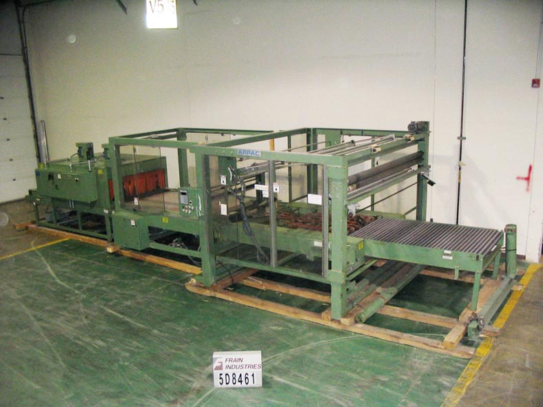 回所有设备Arpac模型105FFS-60,自动间歇运动,内联,压缩打包器和隧道数/分钟-视材料应用而定产品大小:51下方宽度x10下方80长x51宽弹性链路传送器和70长x51宽老鹰带传送器和90长x51宽馈送送送送器双滚膜松起站双带热缩通道52宽x13-1/2高孔径x94长热室(2)热空气回播风扇控件板A/BPLC带密封条和(2)热通道温度控制器、E-stops系统、状态指示灯系统、屏障加插电锁系统