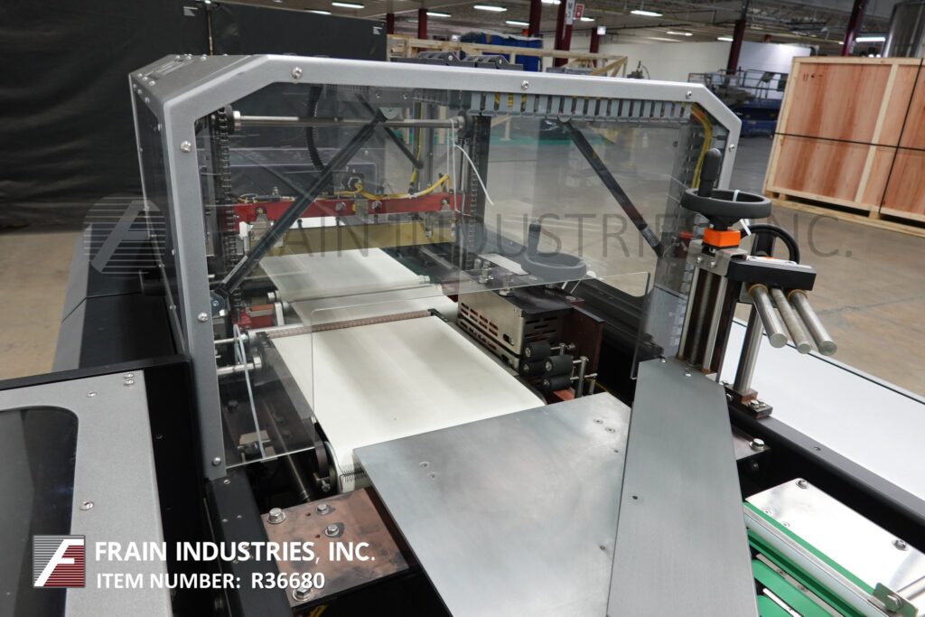 返回所有设备ARPAC,AL18-B型,通过收缩包装器的水平流动。根据材料,应用和机器配置,额定值为0至100英尺(每分钟),其产品数量。包装尺寸范围:长度为3“至34”;宽度½“至18”;1/8“至8”。配备了18英寸宽x 118英寸长滑动扭矩,在进料输送机中,14-3/4“宽x 35”长传输输送机,13-3/4”宽x 33“长放电输送机,25” pre折叠侧膜Undind,6英寸长的侧密封和20英寸宽的热刀端密封。控制面板具有A/B PLC控制器和触摸屏HMI。