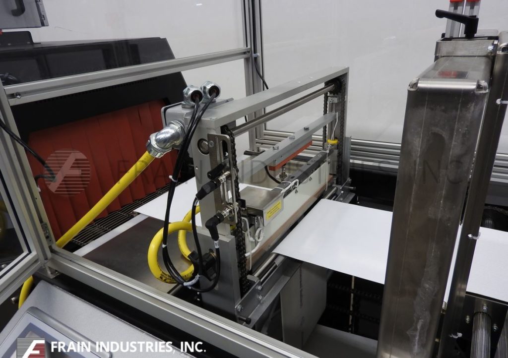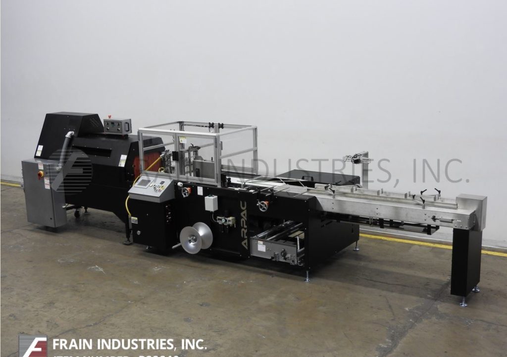 返回所有设备Arpac型号TS37 / XT18,水平,连续运动,侧密封收缩包装和隧道额定从0到90线性英尺或0到80包每分钟-取决于材料,应用和产品的稳定性。产品尺寸范围:长度3-1/2"至60";2"至16"宽度;1/4"到7-1/2"的高度。配备120"长拖齿产品在饲料输送机,LDPE密封钳口与下一代的侧密封与薄膜注册和产品排放输送机。薄膜规格:高达39"宽单缠绕薄膜3"外径芯;外径为14”,带有可拉出的薄膜支架。控制面板有A/B控制器,没有产品检测,穿孔和废料清除车轮,密封条修剪,温度控制器,驱动速度拨号与启动,停止,慢跑和e-stop。安装在(4)有联锁安全防护的腿架上。