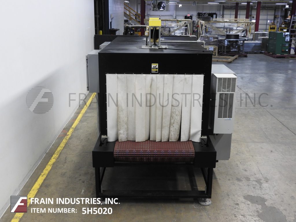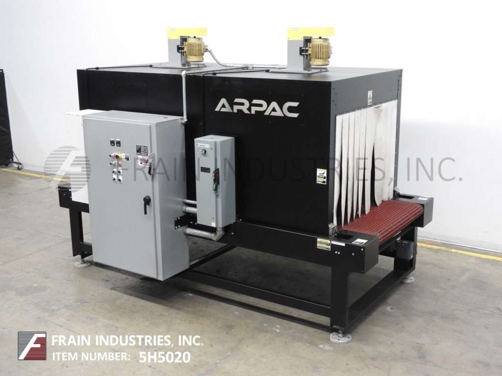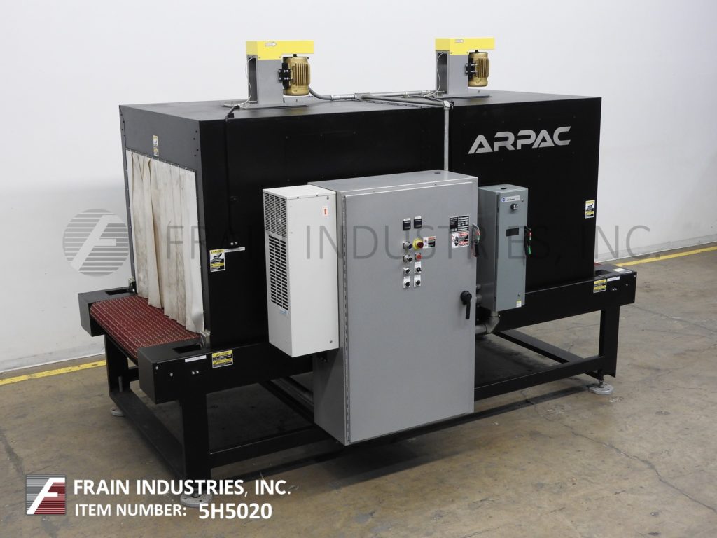 返回所有设备ARPAC型号T54-40-120,高速,(2)区域收缩隧道,每分钟产品数量 - 取决于材料和应用。隧道具有40“高度”的总影响;宽度为54“。腔室尺寸为120英寸的长度。配备150“长X 45”宽尼龙玻璃纤维柔性纤维链接产品带38英寸的饲料和排放高度。顶部安装的双鼓阀独立控制,以适应高速收缩包装系统。控制面板具有加热器1和2控制,电源打开,循环启动,停止,循环,重置e-stop按钮。安装在重型框架上,用(4)高度可调节腿。