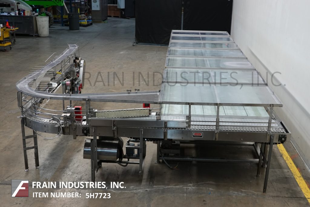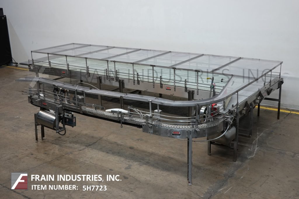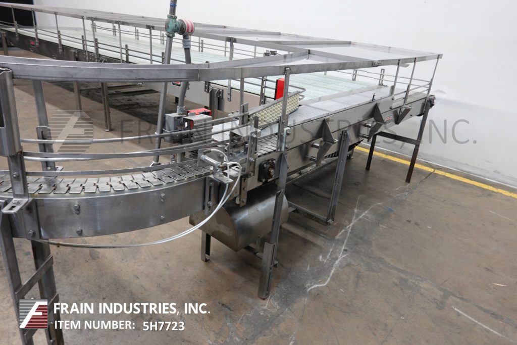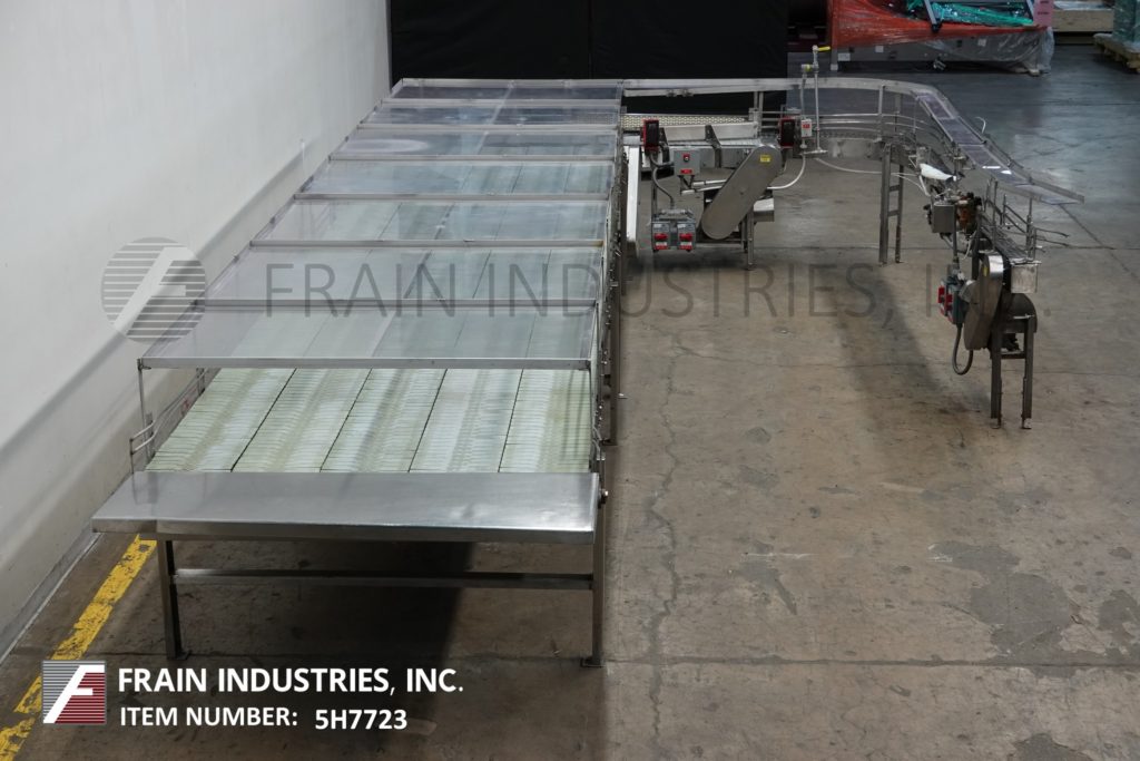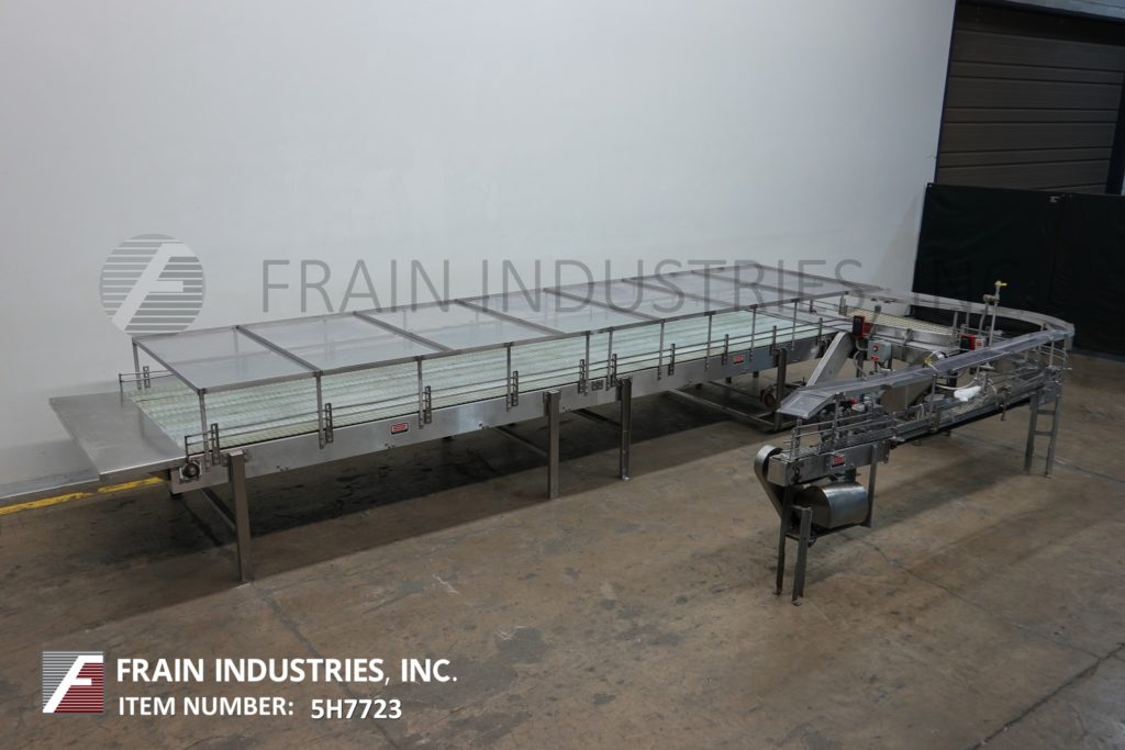箭头,60"宽x 228"L,离线桌面散装到单通道解读器输送机。配备一个60"宽x 228"长堆积区,12"宽x 102"长车道输送机和4½"宽x 222"长卸料输送机。