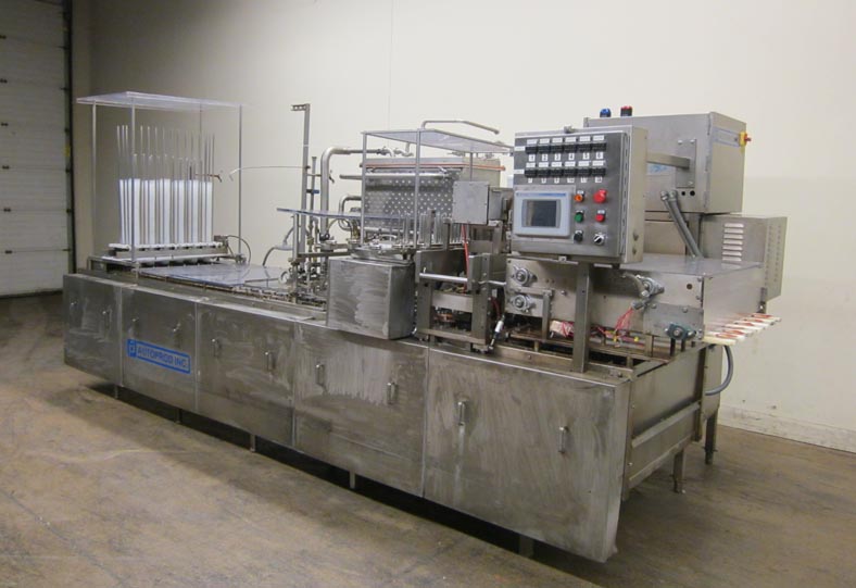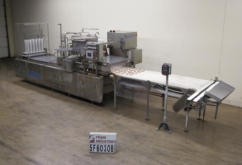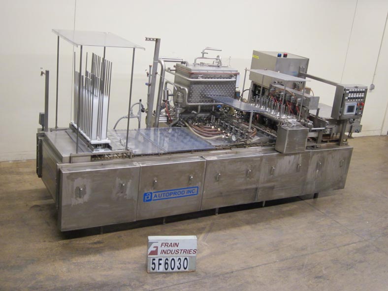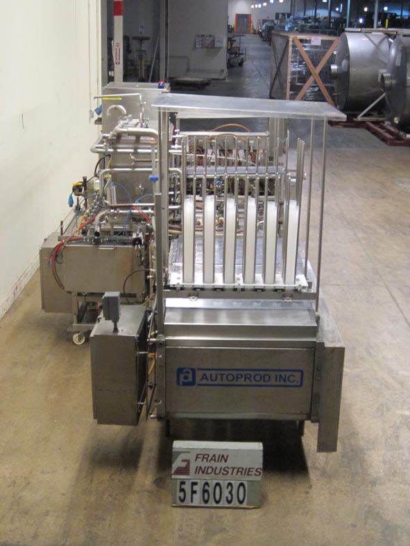 返回所有设备Autoprod Model 2 x 6,自动,内联,不锈钢,杯填料/封口机从120至360杯/分钟额定 - 速度取决于材料和应用。填充范围:0.5一次至1.04夸脱。单位拒绝,填充和热密封芯片将箔片密封件粘在杯子上。配备双车道杯尼斯特,12头活塞填料,积极切断灌装喷嘴,带有凹陷和纵向产品料斗,以保持产品热或凉爽。双车道往复式预切割,箔盖PIC-N - 具有快速变化的杂志,用于连续运行,双车道热封站,从杯子携带口袋排出。最后灌装产品在180至190度Farenheit进入4oz杯中。