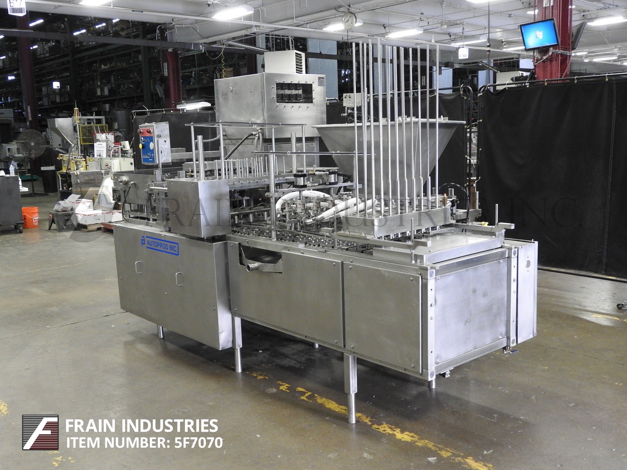 返回所有设备Autoprod Model 2 x 4,自动,内联,不锈钢杯填料,模具切割热封额定值10至30次循环,或每分钟80-240杯 - 取决于材料和应用。拒绝,填充和预切割密封杯,目前设置为2 x 4模式,5-1 / 4“中心。配备双车道杯士气,双车道8头活塞填料,带有产品料斗,双车道往复式预切割,铝箔盖式PIC-NAPLE和双车道热封部分。控制面板采用加热器,热封,输送机,杯子和盖子概念控制和e-stop。