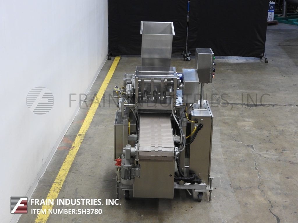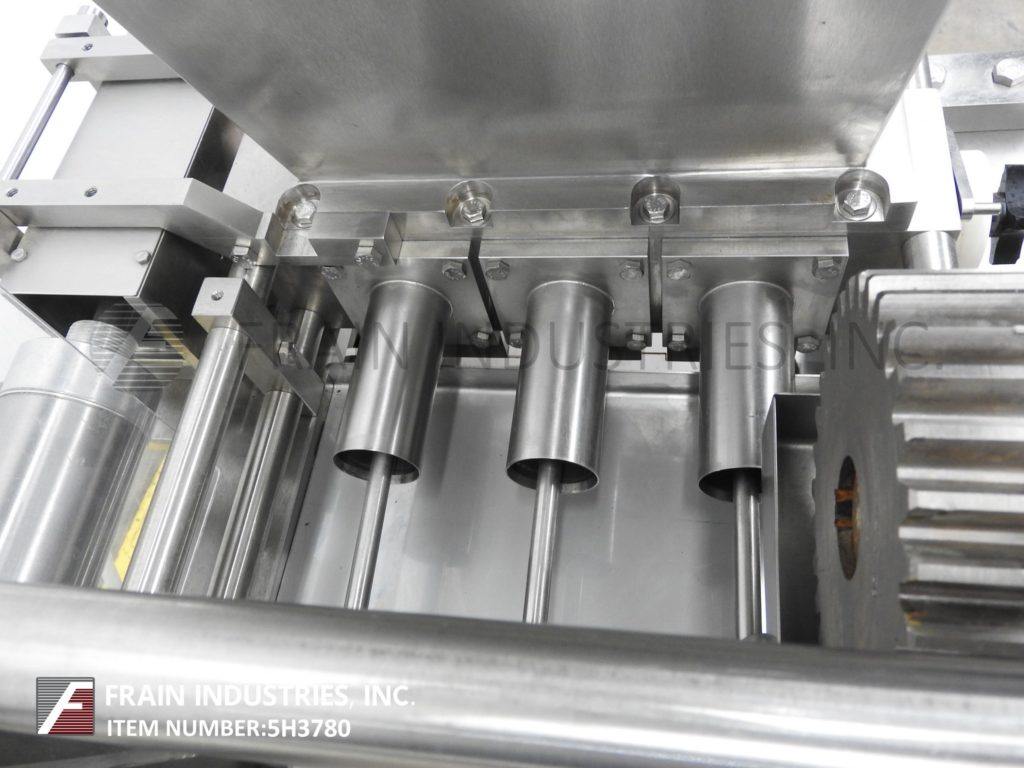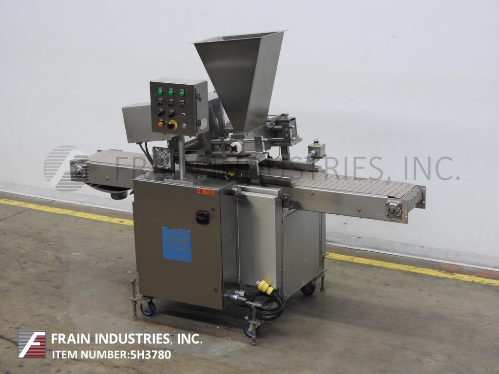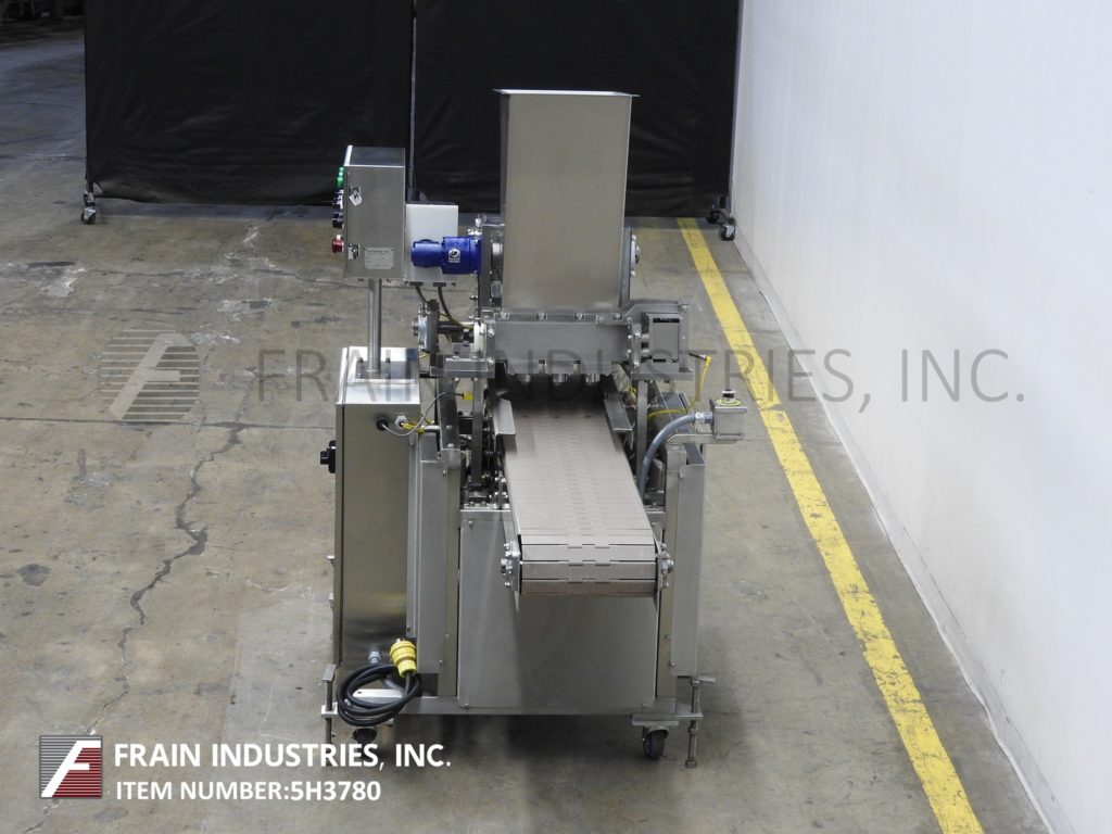 返回所有设备Autoprod / Oystar,型号F-3,内联,不锈钢(3)活塞沉积器。每分钟容器 - 取决于材料,应用,环境和机器配置。配备17“长X 12”宽X 24“深锥形产品料斗和96”长X 12“宽DELRAN输送机,具有36英寸进料和排放高度。(3)1/2“ID活塞,设置在3-1 / 2”中心和执行器阀上。控制面板具有机器开/关/自动和填充量,填充速度,输送机开/关和输送机可变速度控制拨盘,可通过e-stop。安装在不锈钢基础框架上,带脚轮和平整腿。