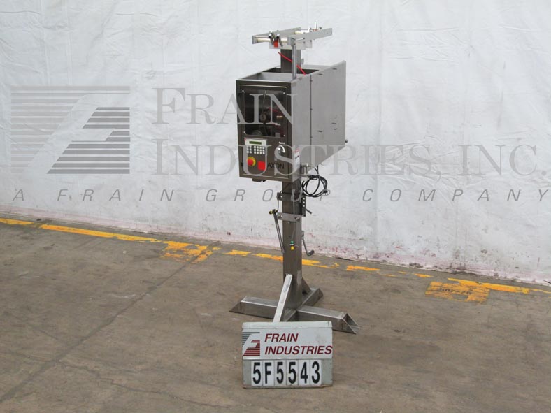 返回所有设备轴突,EZ-100型,自动,篡改明显收缩领带或袖子标签应用器。额定40至150个集装箱每分钟-速度取决于材料,应用和机器配置。铺平:15毫米到112毫米。集装箱尺寸范围:3/8"至2-11/16"。薄膜厚度:40 ~ 70微米。配备照片眼机器激活,刀膜切断,步进驱动膜馈送系统,登记,捣碎和触摸板控制器与LED显示。安装在高度可调的不锈钢框架上,带有调平腿和脚轮。薄膜规格:高达15“直径辊上3”芯。