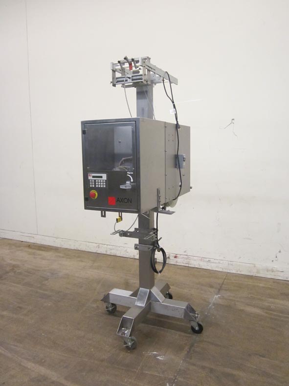 返回所有设备Axon EZ-100,自动,篡改明显收缩领带或套管标签涂抹器额定从30至150个集装箱每分钟-取决于材料,应用和机器配置。铺平:18毫米至130毫米。容器直径尺寸范围:10米至79毫米。薄膜厚度:40 - 70微米(1.5 - 3 mil)。配有照片眼,机器激活,刀膜切断,步进驱动送膜系统和触摸板控制器与LED显示。安装在高度可调的不锈钢框架与脚轮。薄膜规格:直径可达15”的辊。